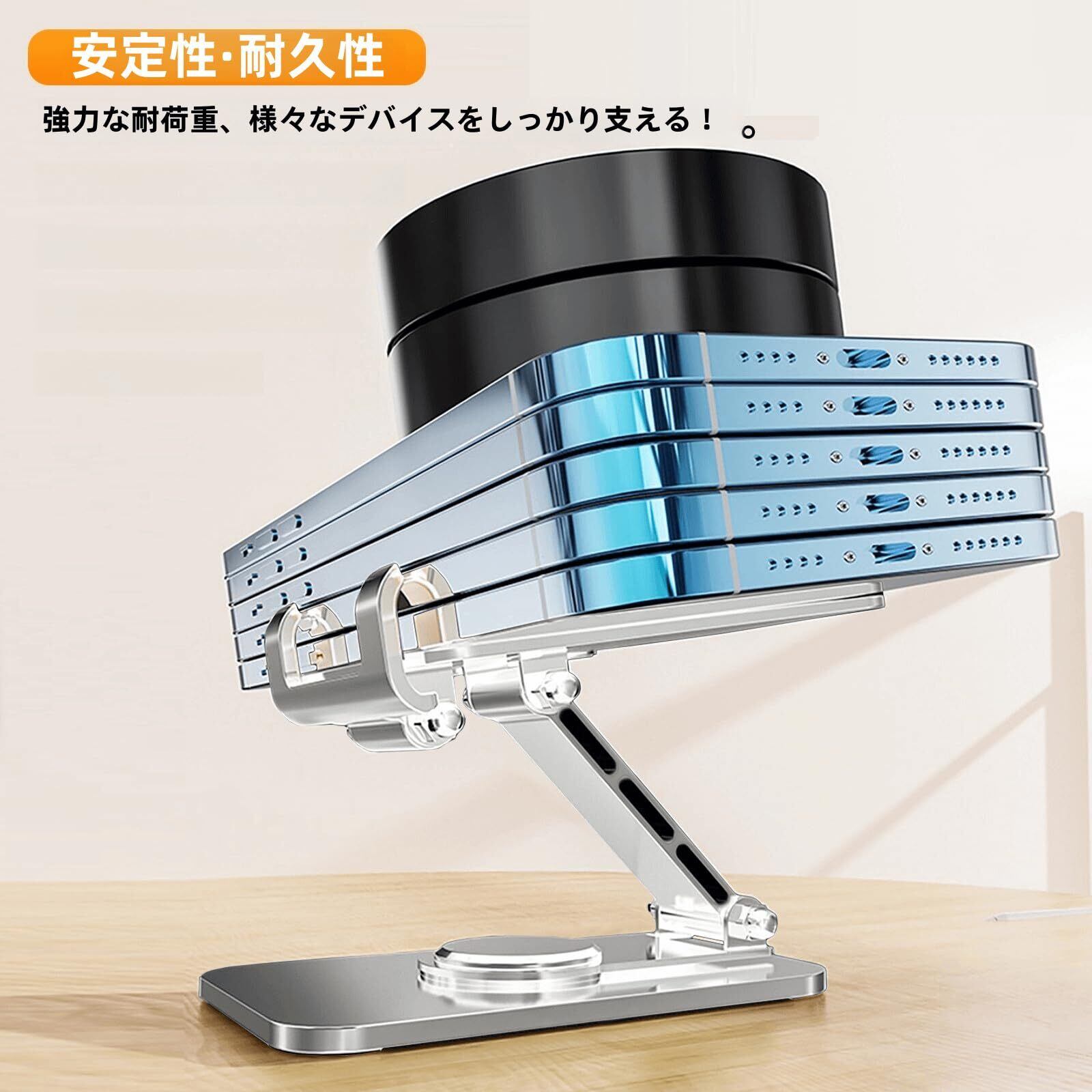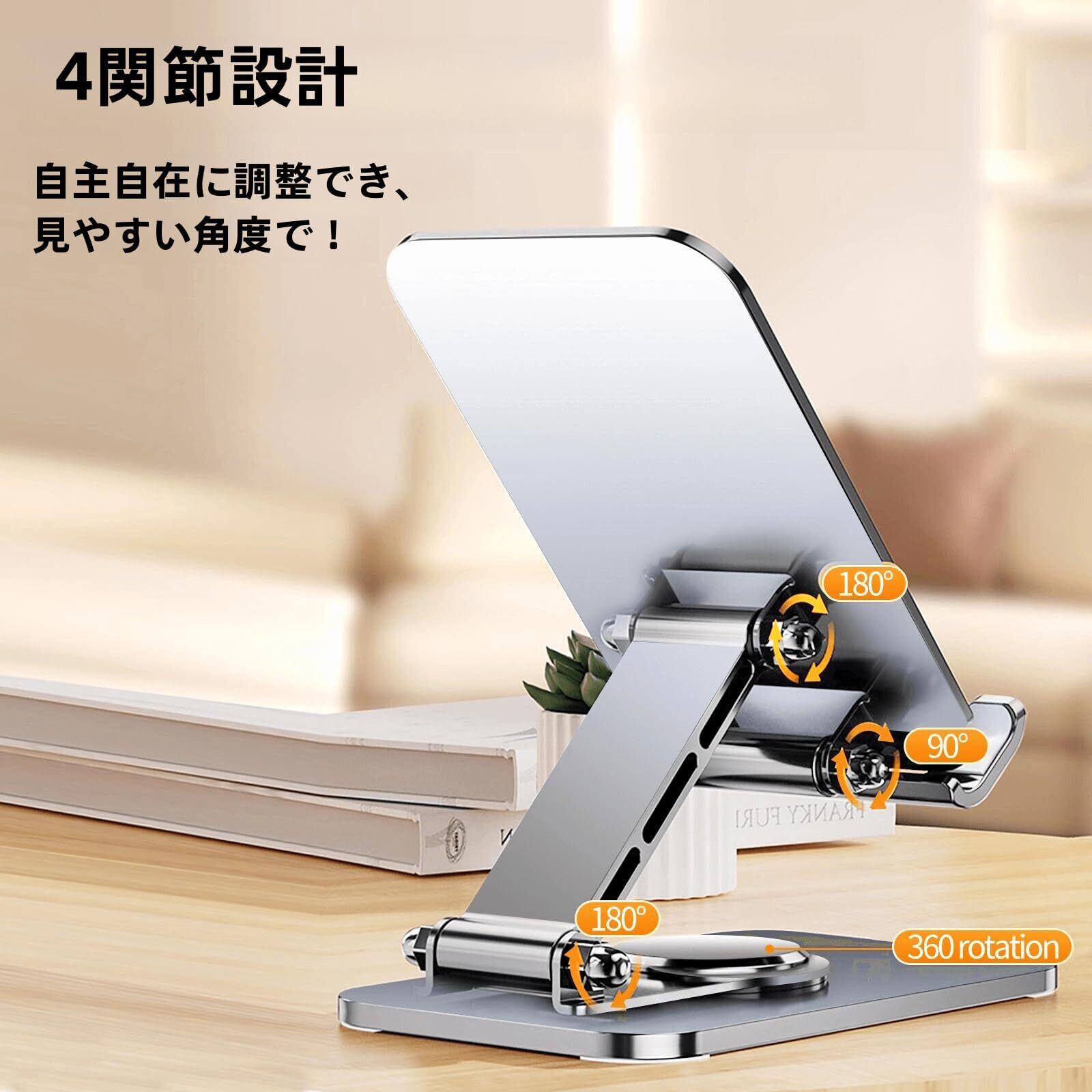 【新型4関節】スマホスタンド 卓上 360度回転 携帯スタンド 高さ角度調整 滑り止め設計 スマホ・タブレット スタンド 折り畳み式 スマートフォン スタンド 持ち運びに便利 iPhone/Android/iPad対応 シルバー