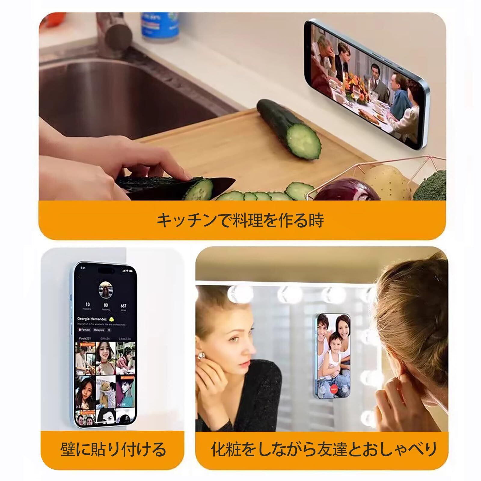 【様々なシーンで活躍】壁や浴室、洗面所、車内、ダッシュボード、キッチン、化粧台などDIYのどんな場所に簡単付着で活躍できる。いつでもどこでも快適 音楽を聴いたり、動画を見たり、ながら作業をしながら携帯が使えます。