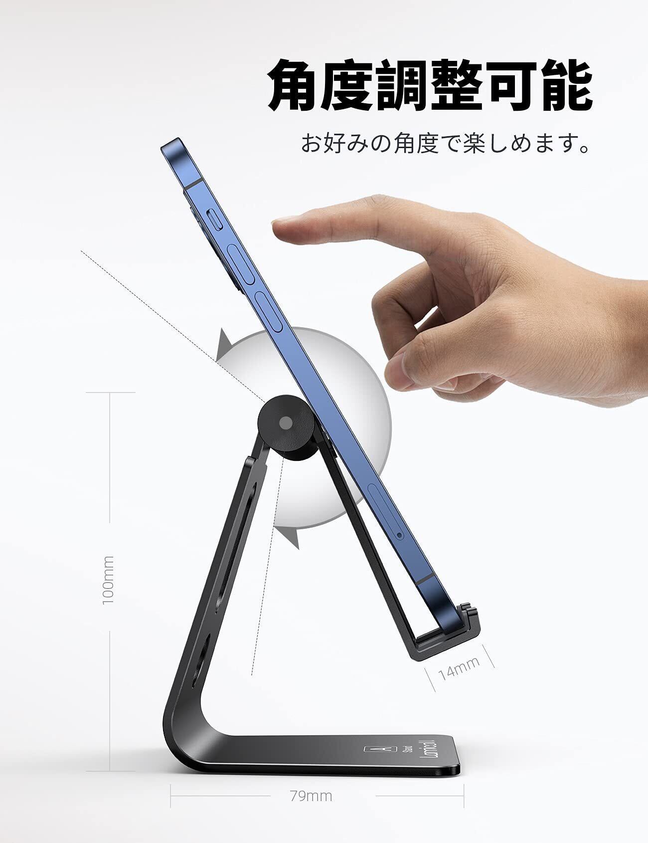 Lomicall スマホ スタンド アルミ ホルダー 角度調整 : 携帯 卓上 横 縦 スマフォスタンド アイフォン デスク 置き台 アイフォン アンドロイド, iPhone 16 15 14 plus pro promax 13 mini 12 11 プロ マックス XS XR 8 7 6 5 se, Huawei p20 p30 lite, Xperia, android対応 黒 ブラック
