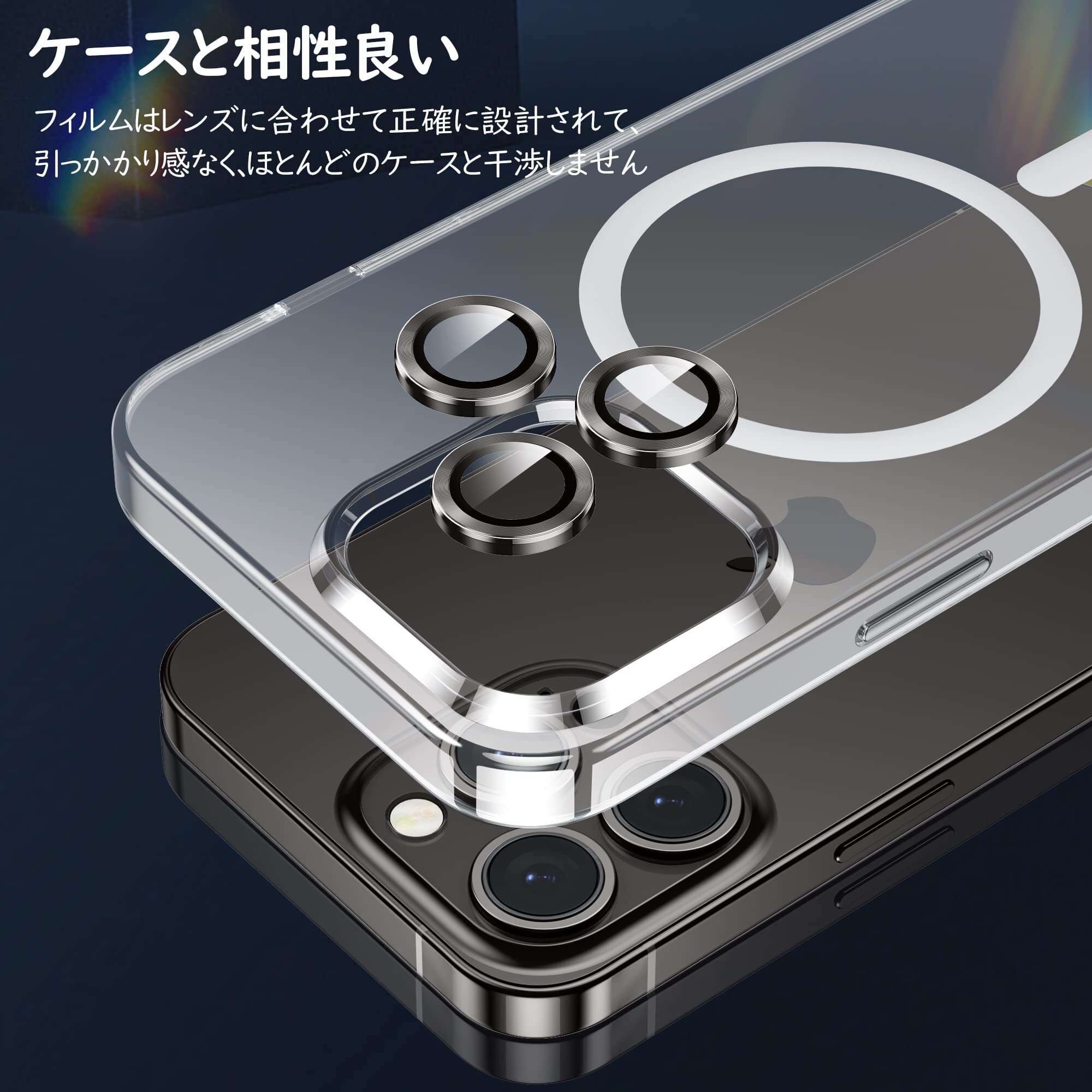 【新着商品】カメラフィルム iPhone 14Pro/14Pro Max用 カメラカバー 9Hガラス アルミ合金製 カメラ保護 キズ防止 耐衝撃 高透過率 アイフォン 14プロ/14プロマックス用 カメラレンズカバー スペースブラック | impsmile