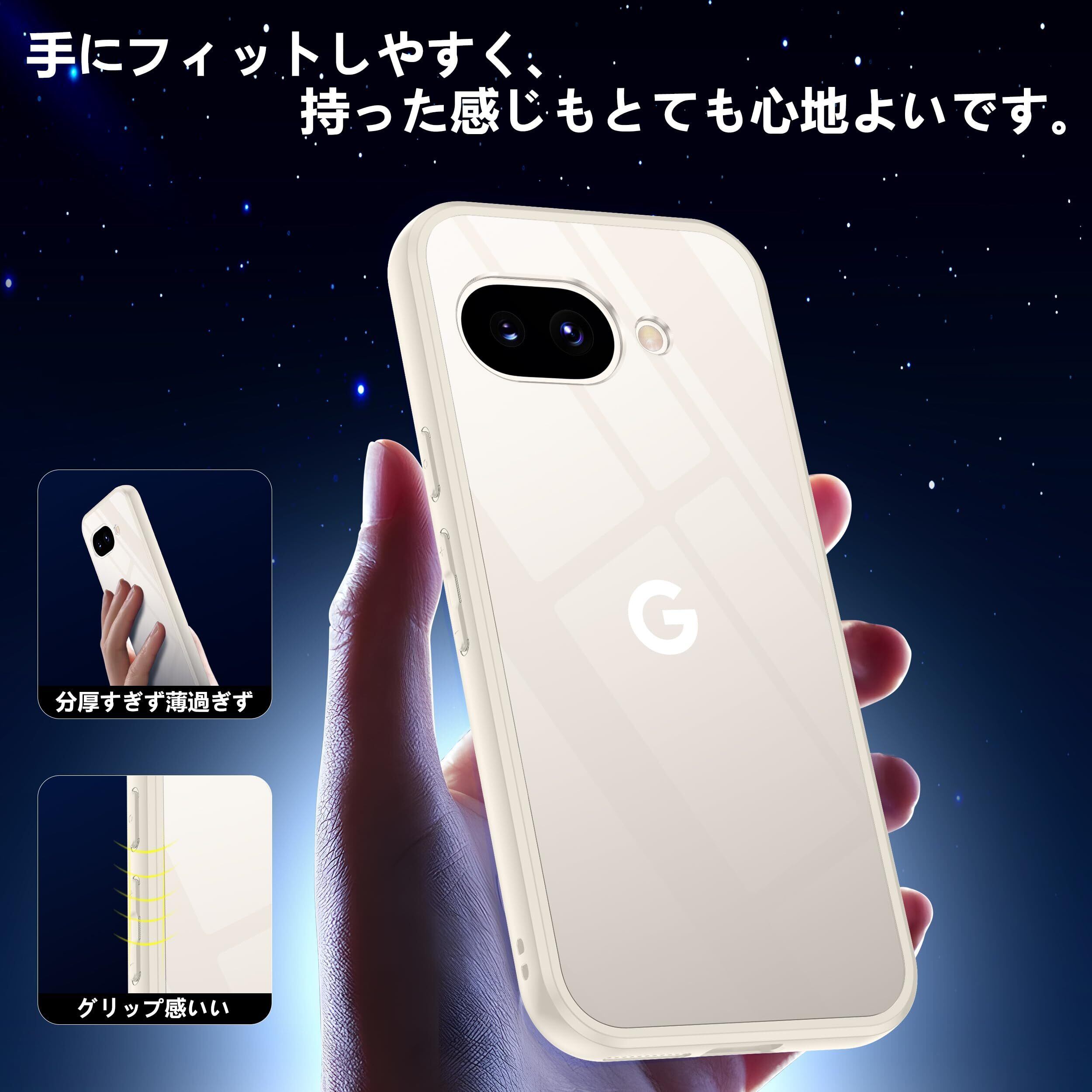 Google Pixel 9a ケース ベージュ 黄変防止 グーグルピクセル9a用 耐衝撃 ガラスフイルム保護付き 指紋防止 落下防止 耐久性 ストラップホール付 薄型 軽量 ソフトカバー ワイヤレス充電対応 googleピクセル9a用ケース