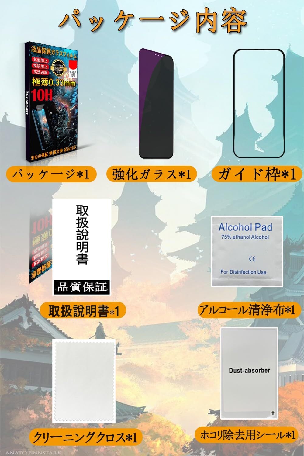 【のぞき見防止】最新鋭の偏光フィルター採用で操作性をキープしながらのぞき見を防止します。正面から見ると高透過率ではっきり見えますが、周りから見ると真っ黒で何も見られなくなり、満員電車やバスの中でもプライベートが守られて、ご安心ください!ご注意:のぞき見防止効果はiPhone画面の明るさによって変わります。