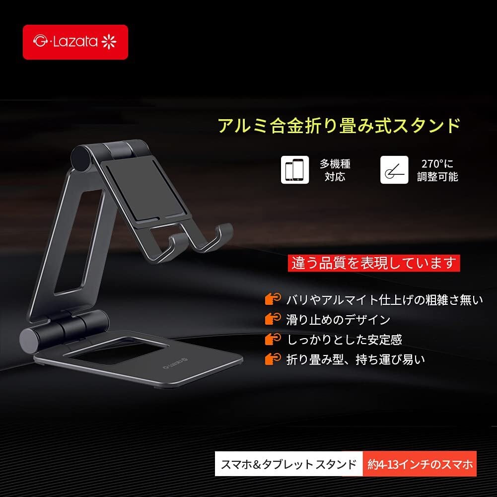 Glazata アルミ製スマホ/タブレット用スタンド 折り畳み式 270°自由調整可能 デスクトップスタンド スマホ タブレット 「グレー」