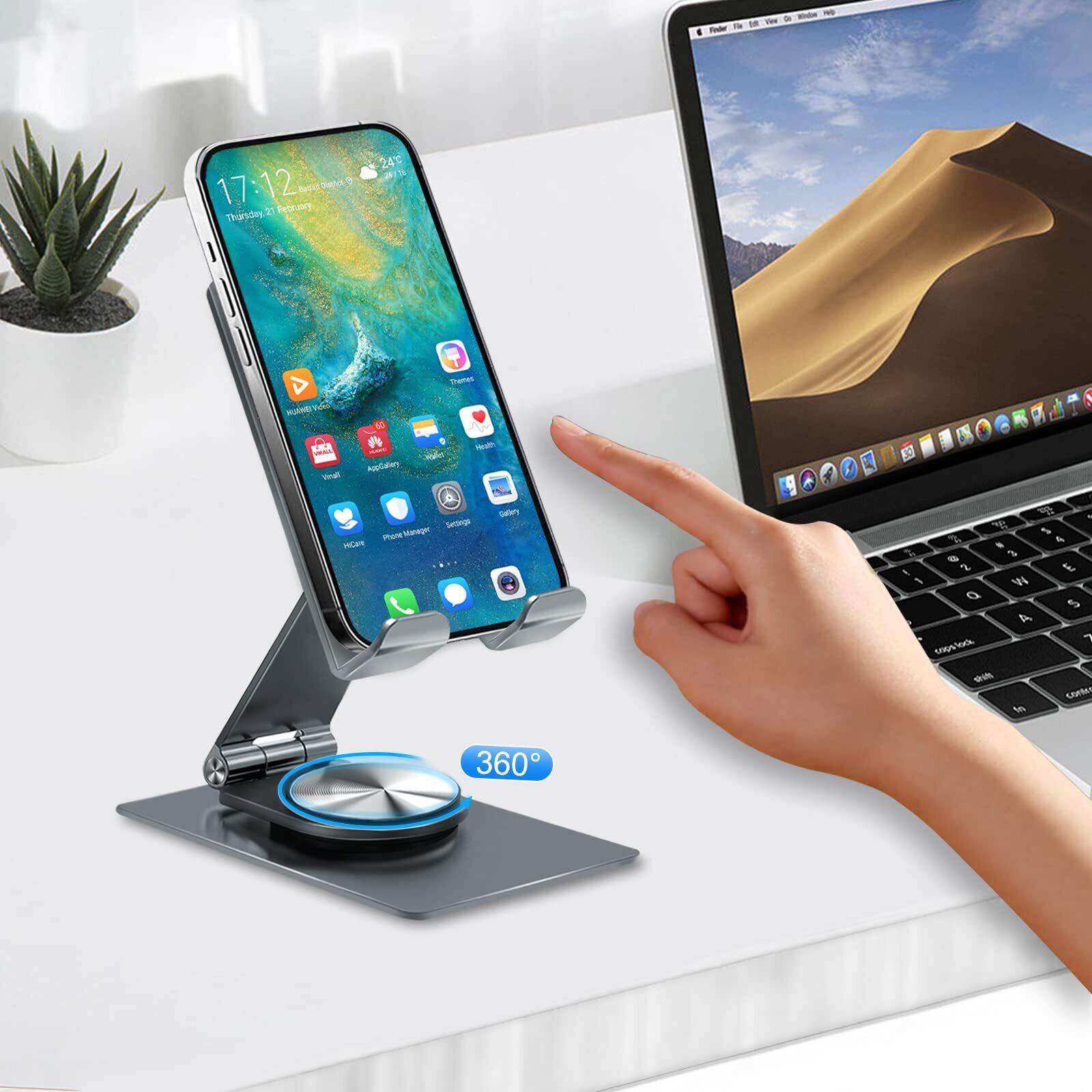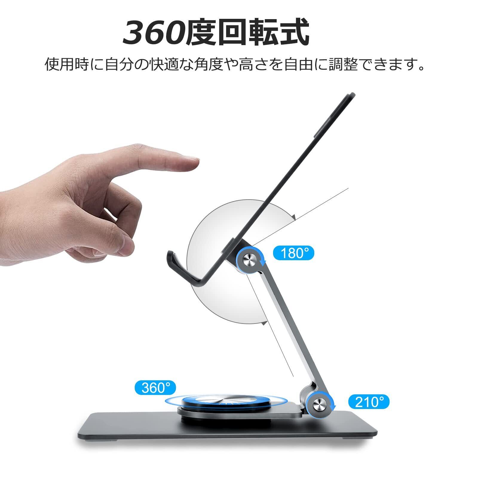 Miady スマホスタンド 360度回転式 折りたたみ アルミ合金 高さ角度調整可能 持ち運び 置き台 横/縦置き 卓上用 4-8インチ対応可能 (グレー)