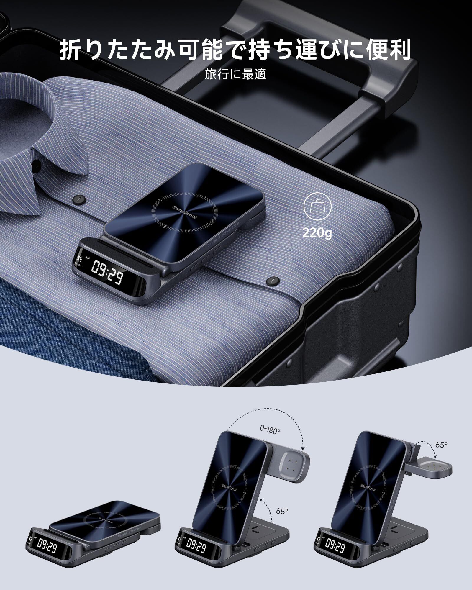 Pixel Watch 充電器 スタンド、ピクセルウォッチ 3/2対応、3in1 ワイヤレス充電器、ピクセルウォッチ スタンド、折りたたみ式、Pixel 9/8/7/6シリーズ、Pixel Watch 3/2/Fitbit Versa 4/3/Sense 2対応、(アダプターの付属なし)、SwanScout 708G2