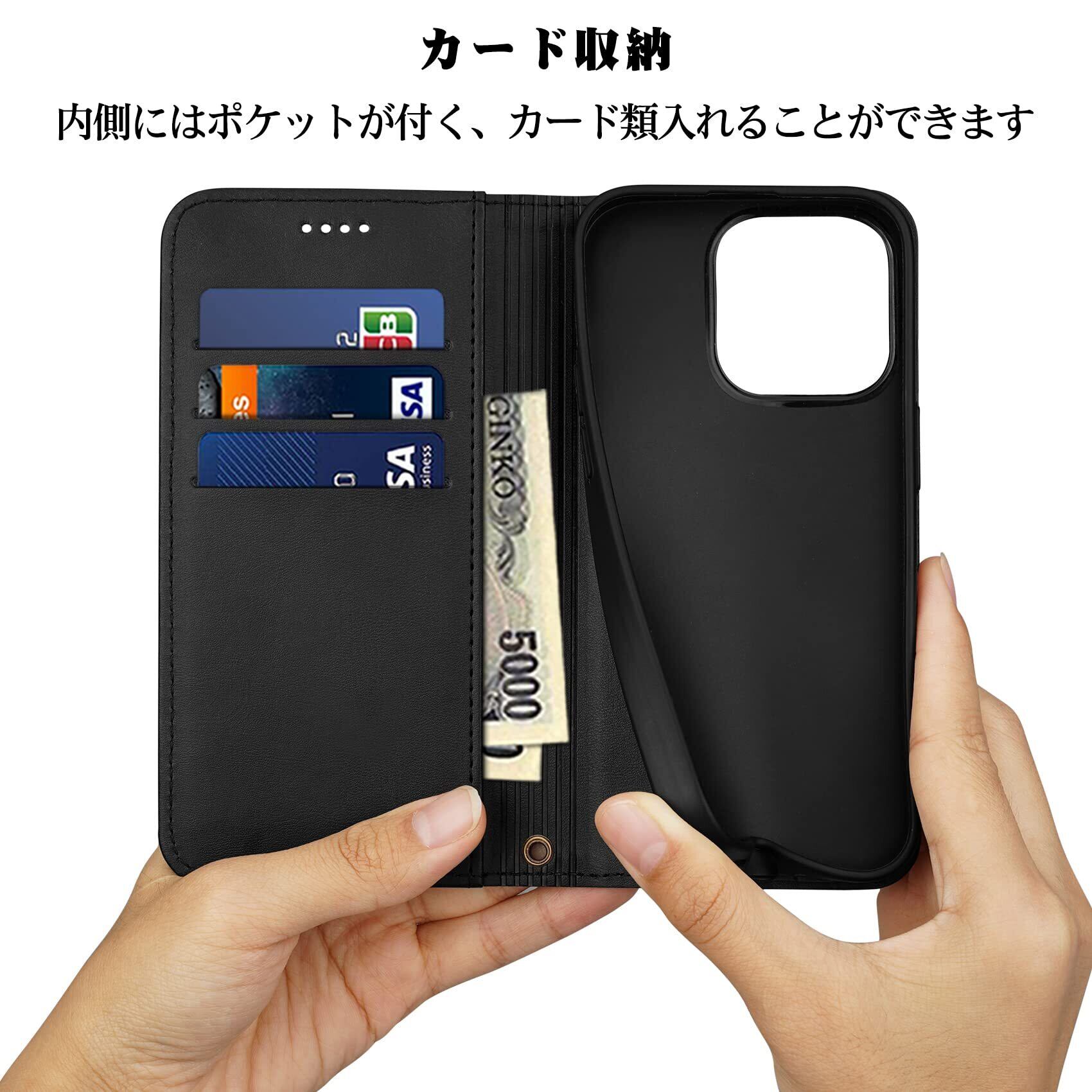 カード収納:iPhone 14pro 手帳型ケースの内側にカードポケットがあり、定期券や、カード、名刺など収納可能です。日常の生活に便利です。ご注意:携帯本体に影響を及ぼす恐れがあるため、弱い内蔵マグネットを使用しています。カードを入れるとマグネットが効かない場合があります。
