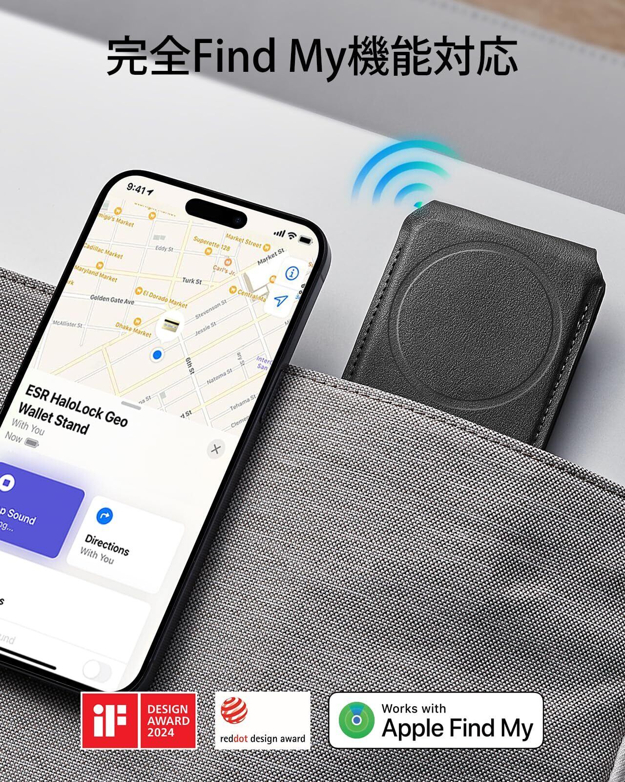 【2022最新】[ESR] MagSafe 対応 カードケース 「探す」フル対応 HaloLock Geoウォレットスタンド MagSafeウォレット 調整可能なスタンド付き ウォレットトラッカー iPhone 16/16Plus/16Pro/16Pro Max/15/14/13/12シリーズ対応 13 Mini/12 Mini非対応 マグセーフカードケース ワイヤレス充電不可 ブラック | impsmile