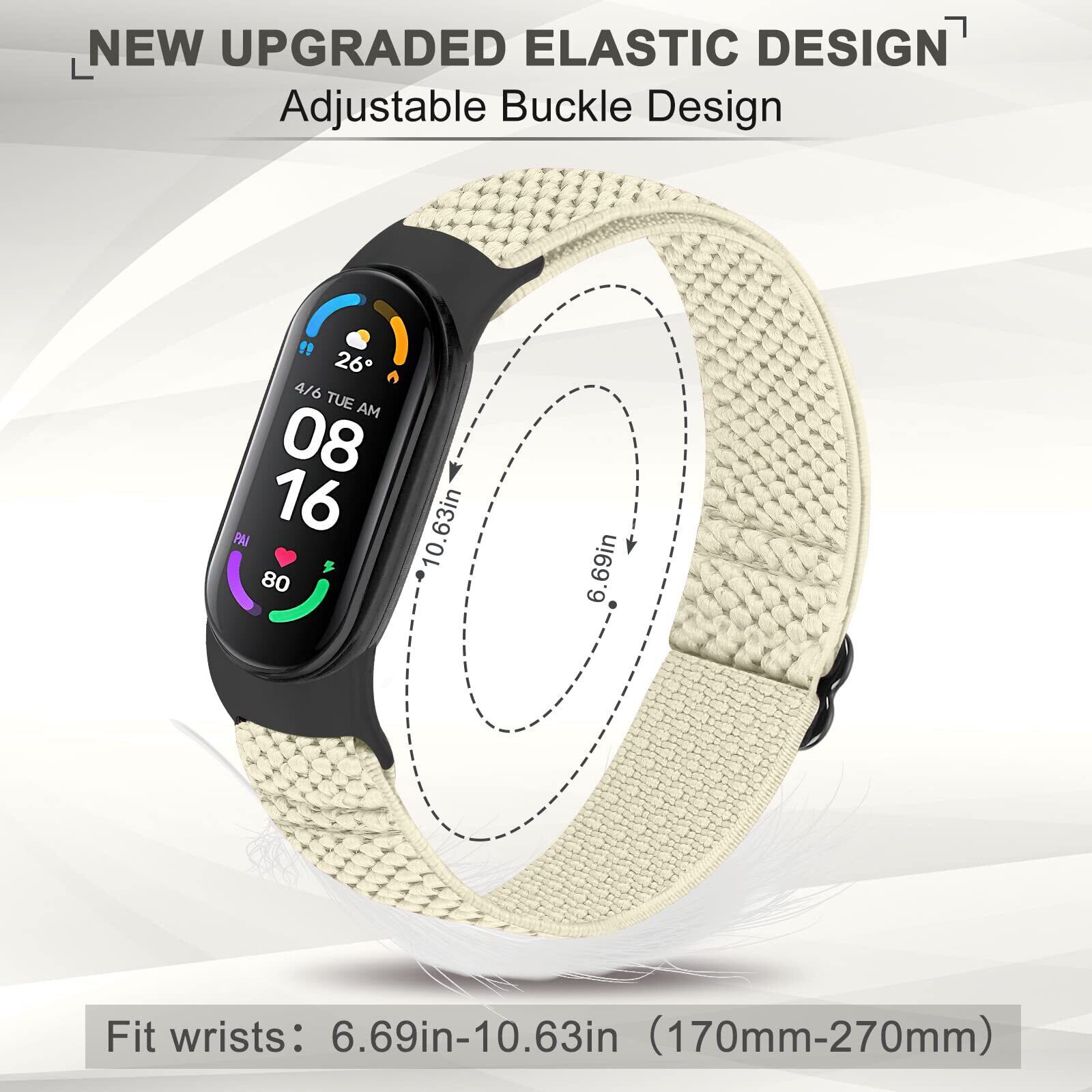 [Huamanlou] コンパチブル Xiaomi Mi Band 7/6/5 バンド 、弾性スポーツ 柔らかく快適で通気性の良い無段階で長さ調節ナイロンループ換えバンド3 Pack