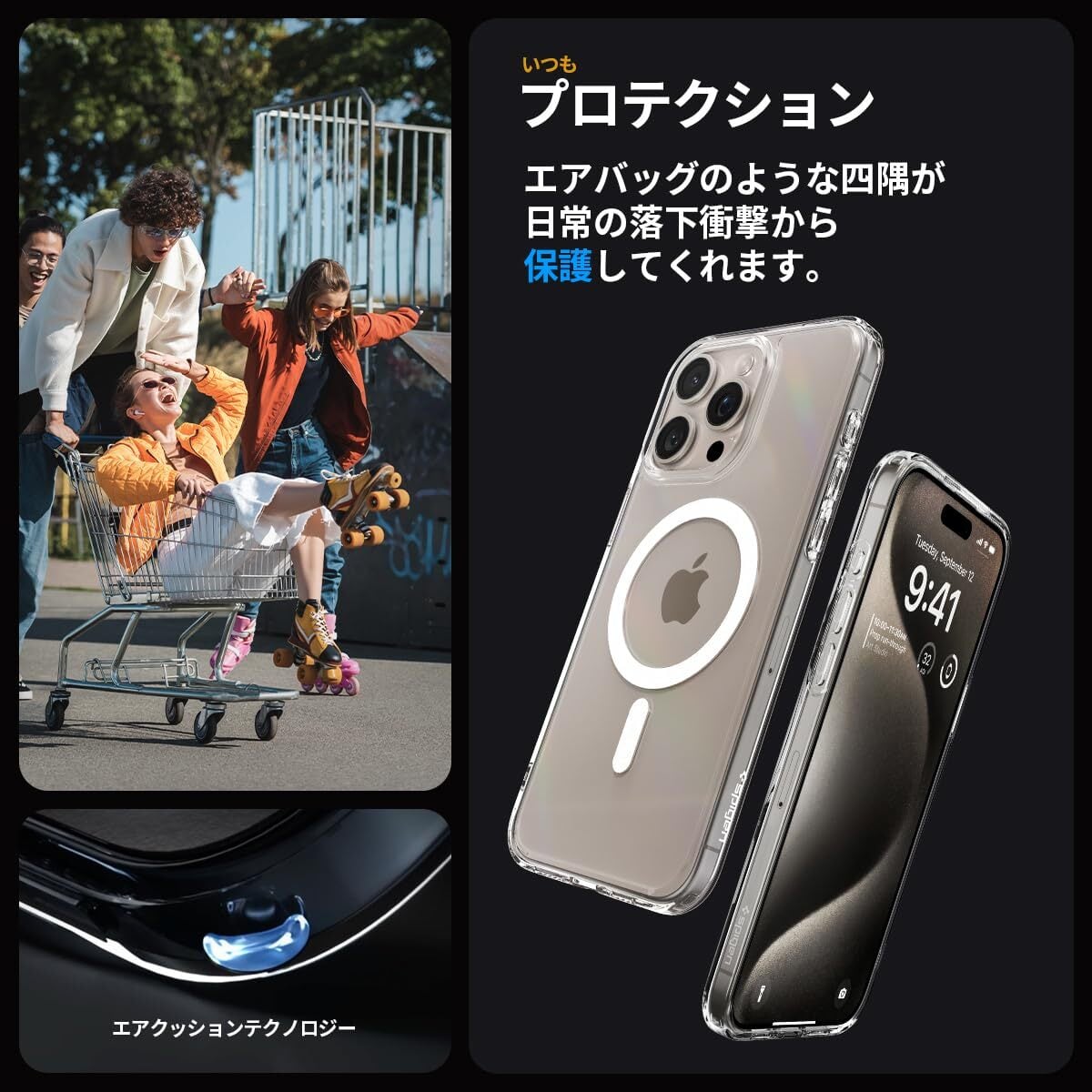 【MagSafe機能 対応】 バックパネルにマグネットが内蔵されており、MagSafe対応充電器および各種MagSafe専用アクセサリーが誤差なくくっつきます。