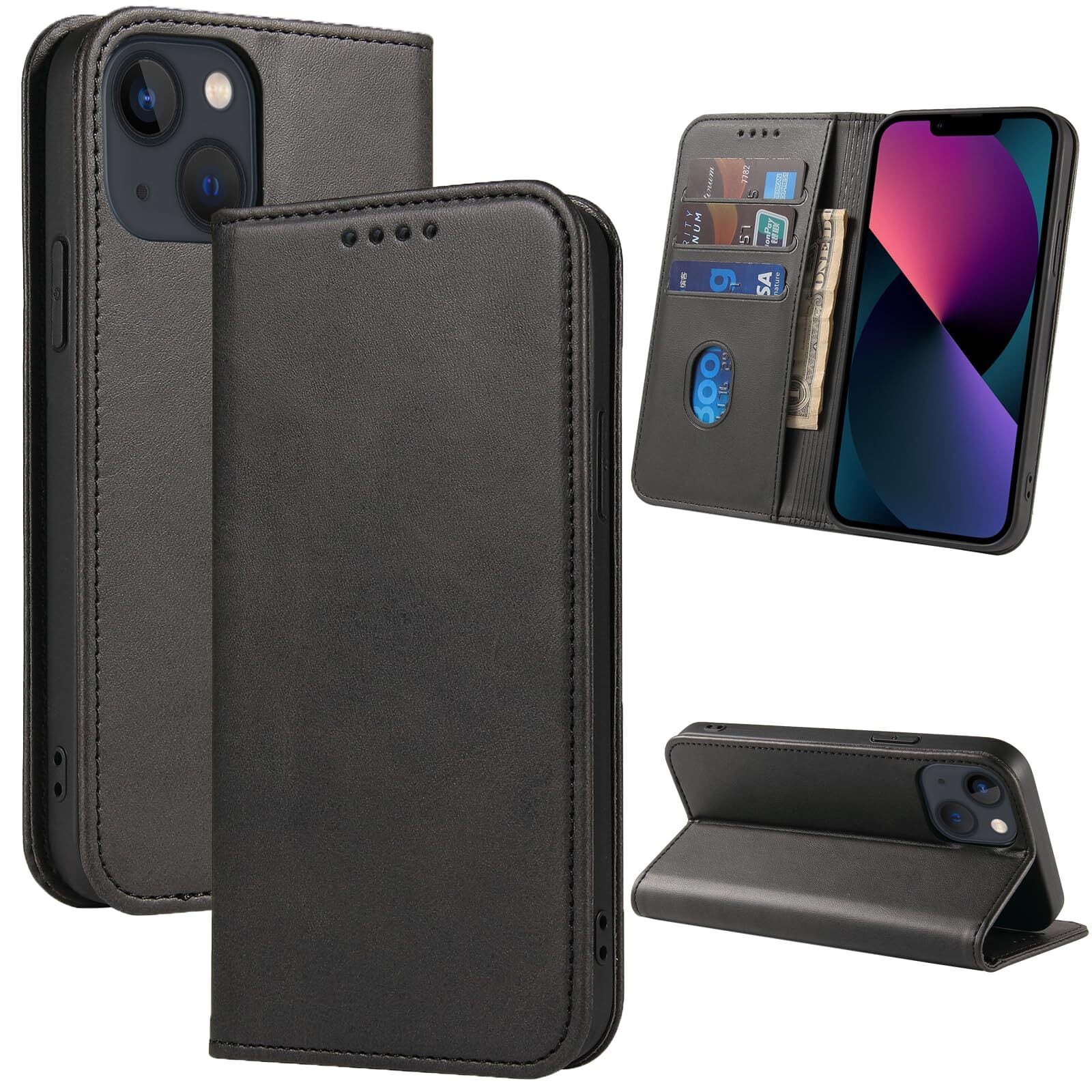 iphone 13 ケース 手帳型 携帯カバー レザー 耐衝撃 耐摩擦 軽量 着脱しやすい 全面保護 手触りが良い マグネット式 カード収納 スタンド機能 人気 上質 6.1インチ対応 EUMADOVE (ディープブラック, iPhone 13)