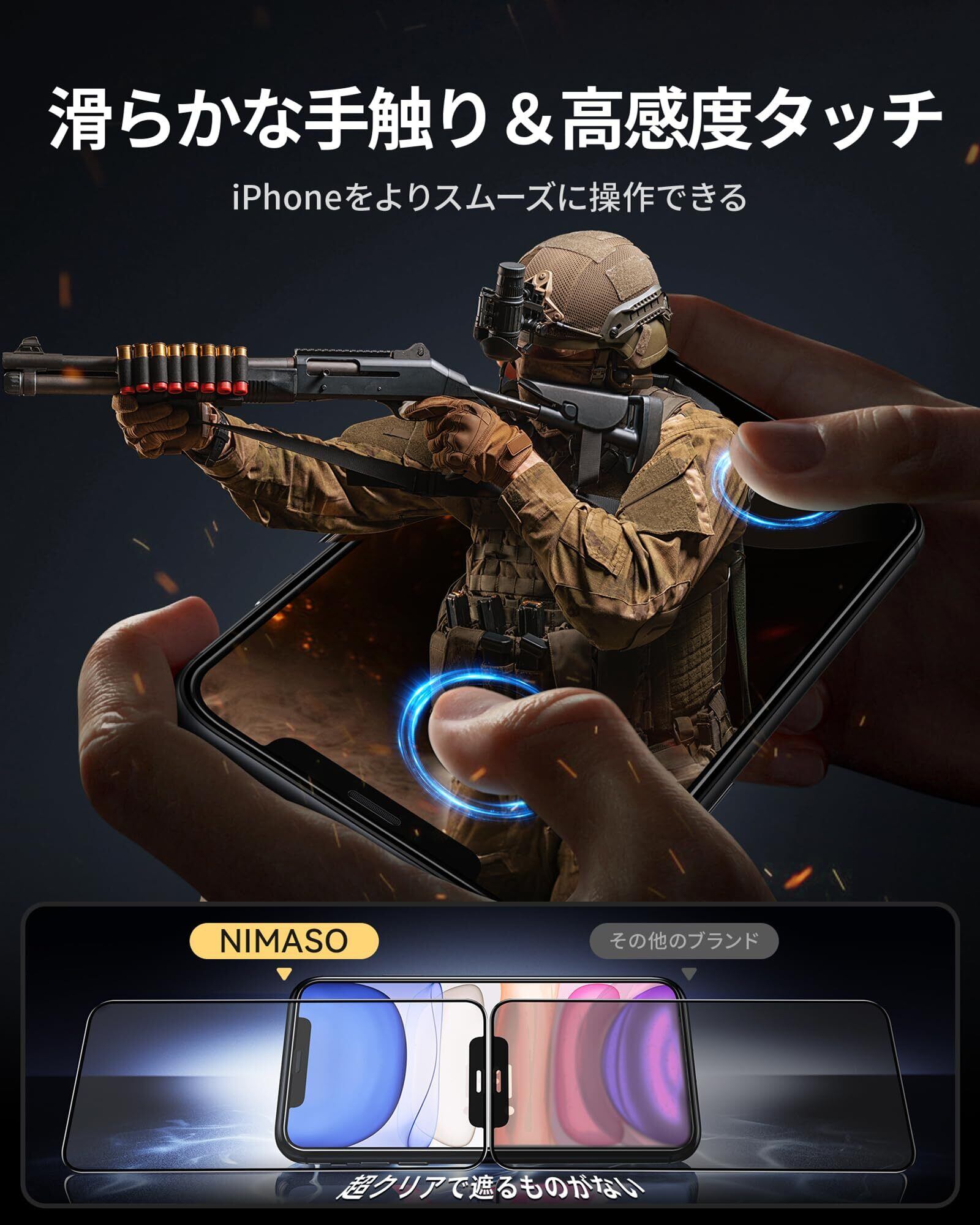 「指紋防止・滑らかな触り心地」本製品は撥水撥油のAF(Anti-Fingerprint)コーディング加工とスムースタッチ加工により、指紋や汚れがつきにくく、油分や水分が強く付着した汚れや指紋がついても、拭き取るだけで綺麗になれます。また、使用時の手触りも滑らかで、毎日のドラマ視聴やオフィス仕事、ゲームなどの邪魔になりません。常に美しいアイフォン11/XRの画面をお楽しみいただけます。