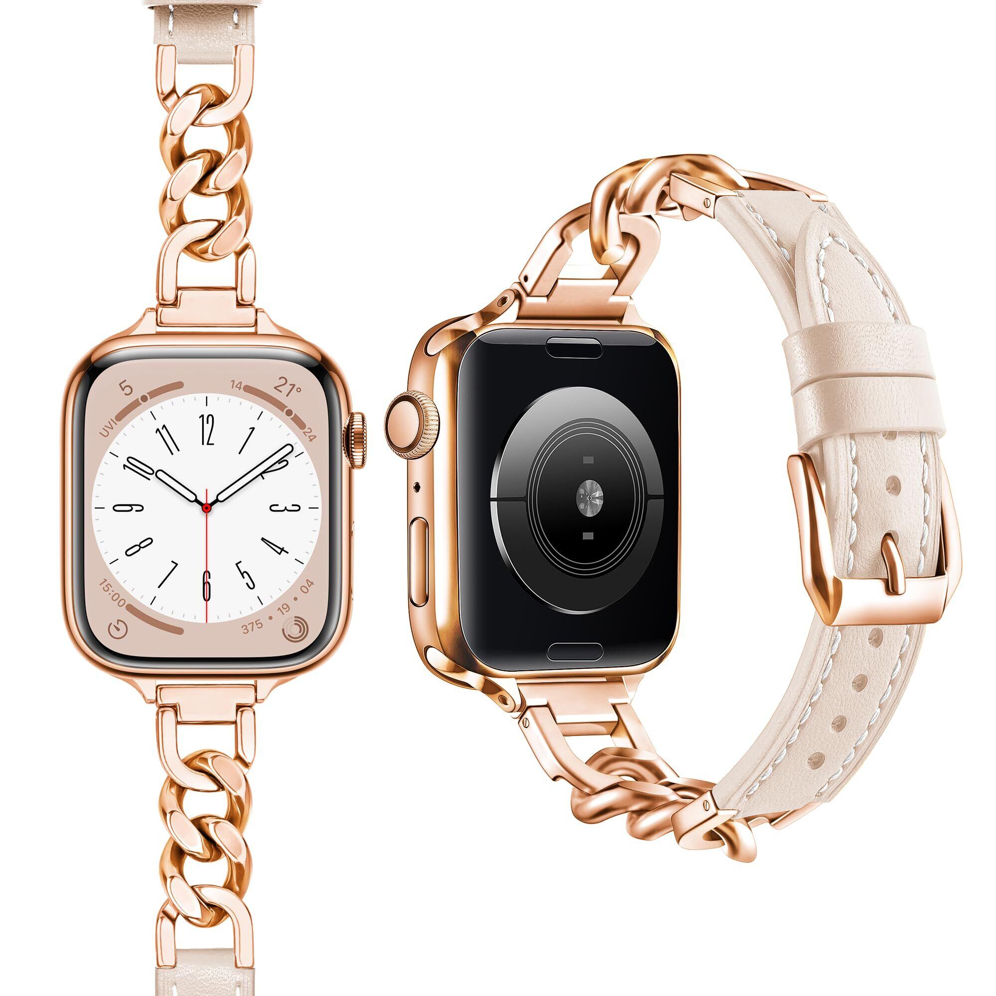 [SIBOYL] 人気細い対応アップルウォッチ バンド41mm 40mm 38mm 42mm(Series 10)、カウボーイチェーンステンレスレザーiwatch バンド、調整ツール不要、トレンドとクラシックの創造的な組み合わせ、互換性いアップルウォッチ バンド レディース、対応Apple Watch 10バンド、互换Apple Watch Seバンド 9 8 7 6 5 4 3 2 1-ローズゴールド