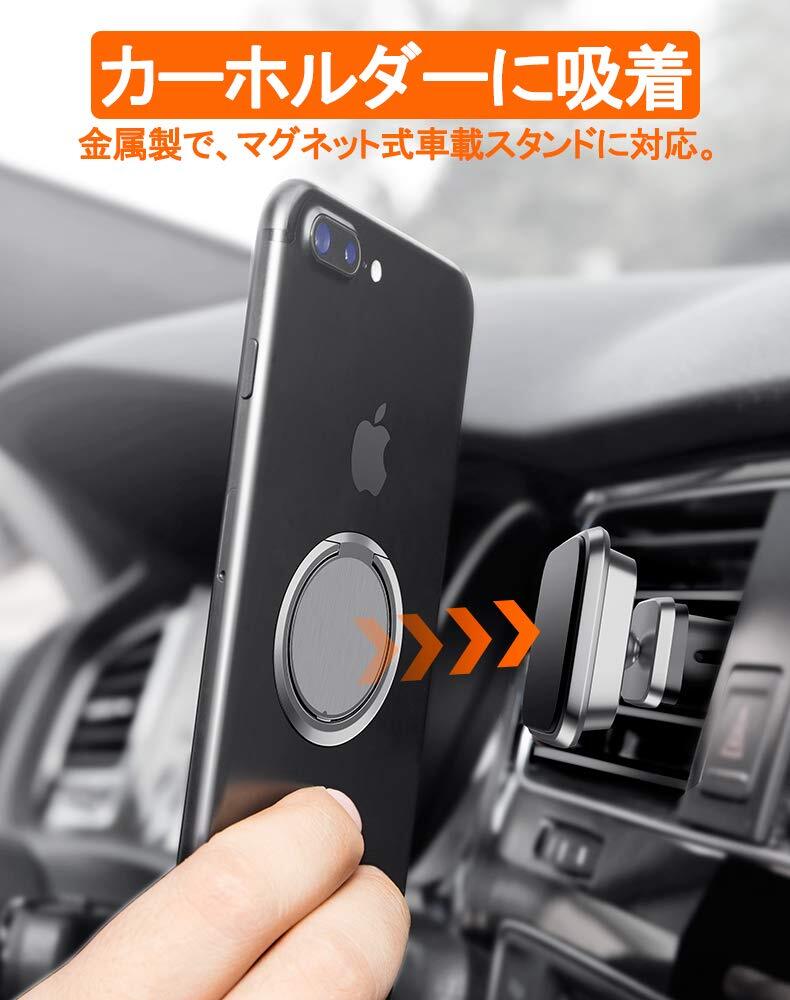 カーホルダーに吸着:金属製で、マグネット式車載スタンドに対応します。スマホ生活がより快適なものになります。