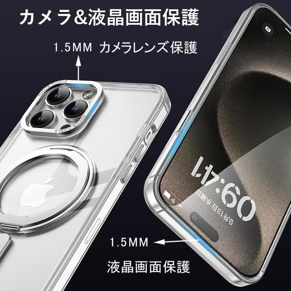 【数量限定】iPhone 15 Pro 適用 ケース MagSafe対応 隠し収納式 多機能一体スタンド アイフォン15プロ カバー OURJOY スマホケース マット感 半透明 米軍規格 耐衝撃 カメラレンズ保護 あいほん15 Pro ワイアレス充電 ストラップホール付き・クリア | impsmile