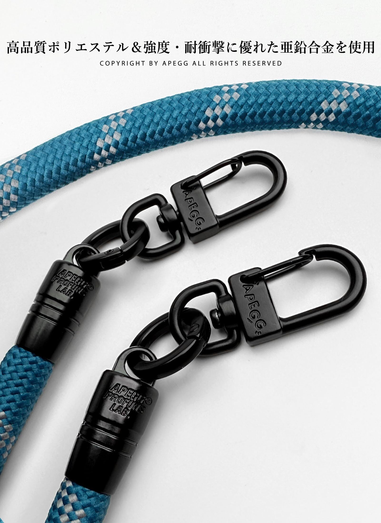 [APEGG] 携帯ストラップ スマホショルダーストラップ 首掛け・肩掛けストラップ 長さ120cm 太さ10mm 頑丈な金属パーツ 落下防止 ストラップホルダー2枚付き 全機種対応 LakeBlue&Gray