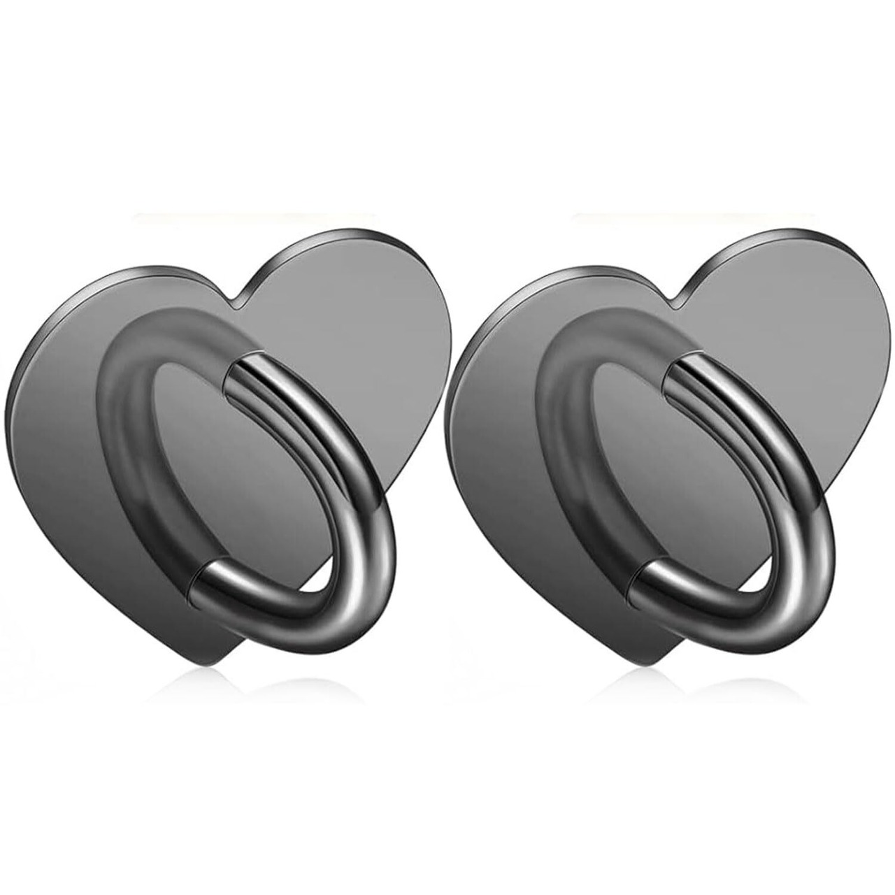 [VEAGIA] キーリングハンガー キーリング スマホリング 2個セット メタル製携帯電話チェーン (ハート型グロス・ブラック)