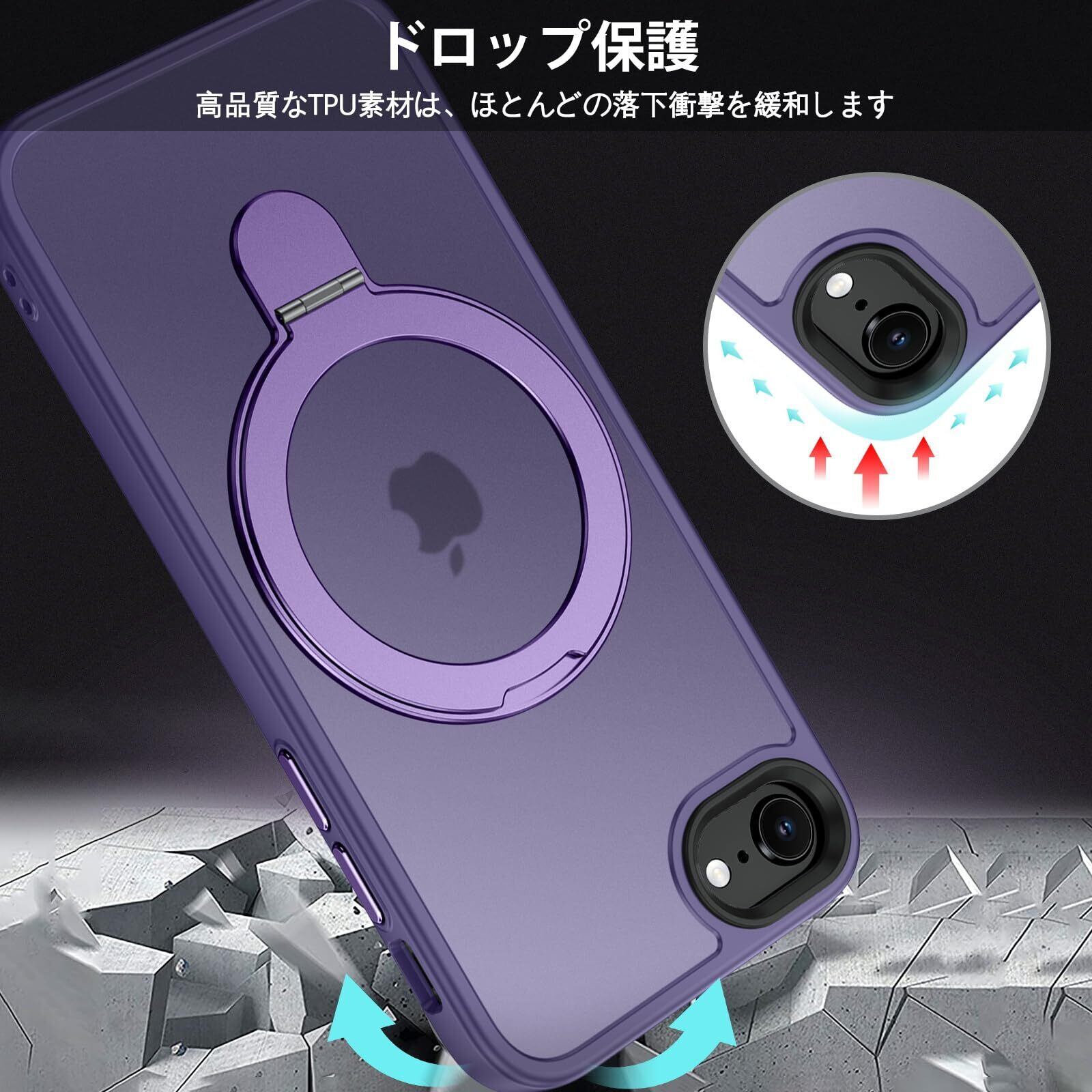 DUEDUE iPhone SE ケース 第2世代 第3世代 MagSafe対応 iPhone8/7 ケース マグネット搭載 リングスタンド機能 120°開閉可能 ダークパープル 半透明デザイン 指紋防止 耐衝撃 一体型 薄型 TPUケース 車載ホルダー対応 ワイヤレス充電 全面保護