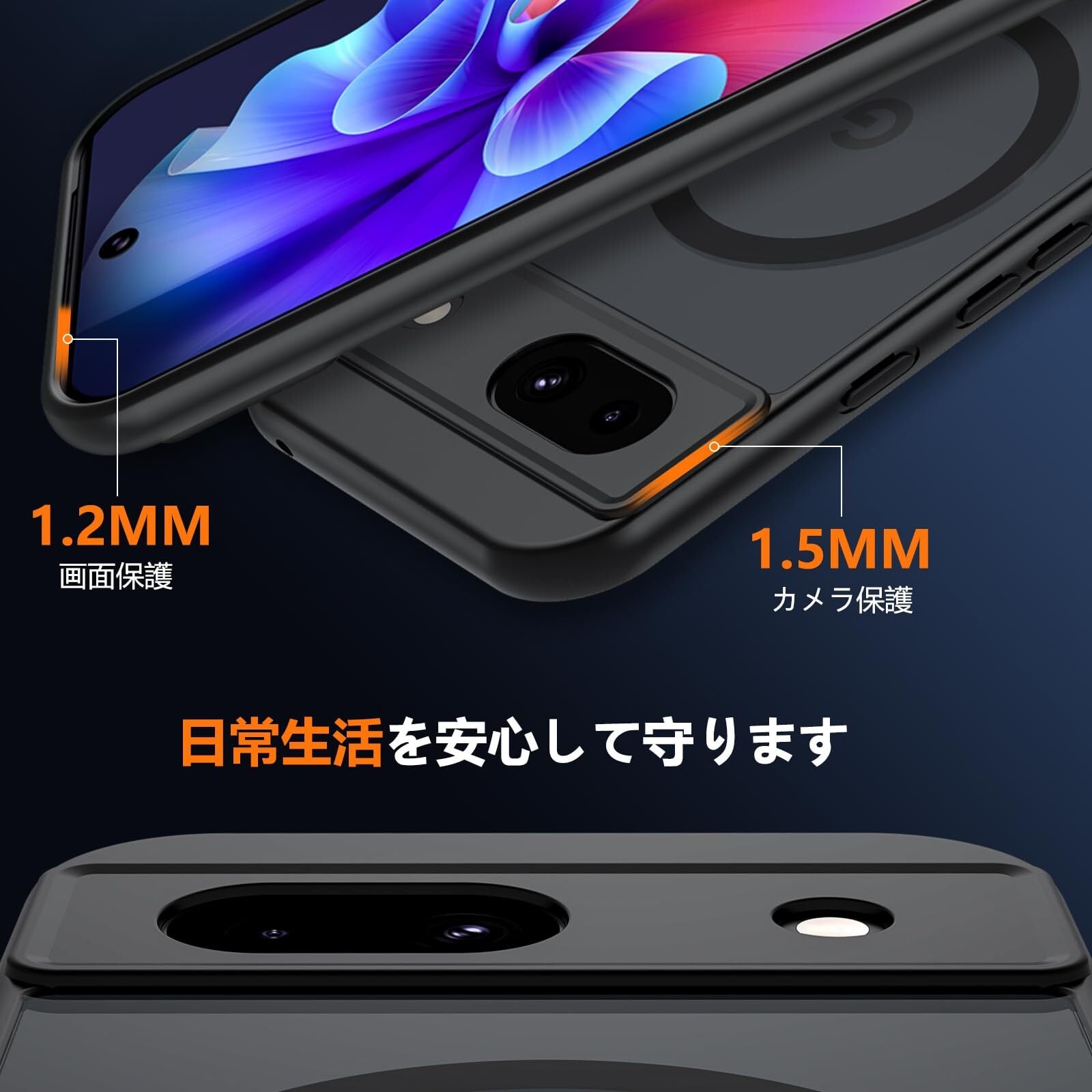 【高品質素材&細部までこだわる保護】厳選されたPCとTPU素材を採用し、一般的な素材よりもさらに耐黄、耐熱、耐スクラッチ、超高い実用性と耐久性で輝き続ける グーグル ピクセル 8a ケース です。また、カメラレンズより1.2mm、画面より1mm高い保護設計を採用し、スマホのレンズと画面が地面に接触しないようにし、うっかり落としても衝撃を吸収し、角までしっかり保護でき、超耐衝撃性の全面保護型の google pixel 8a カバー です。