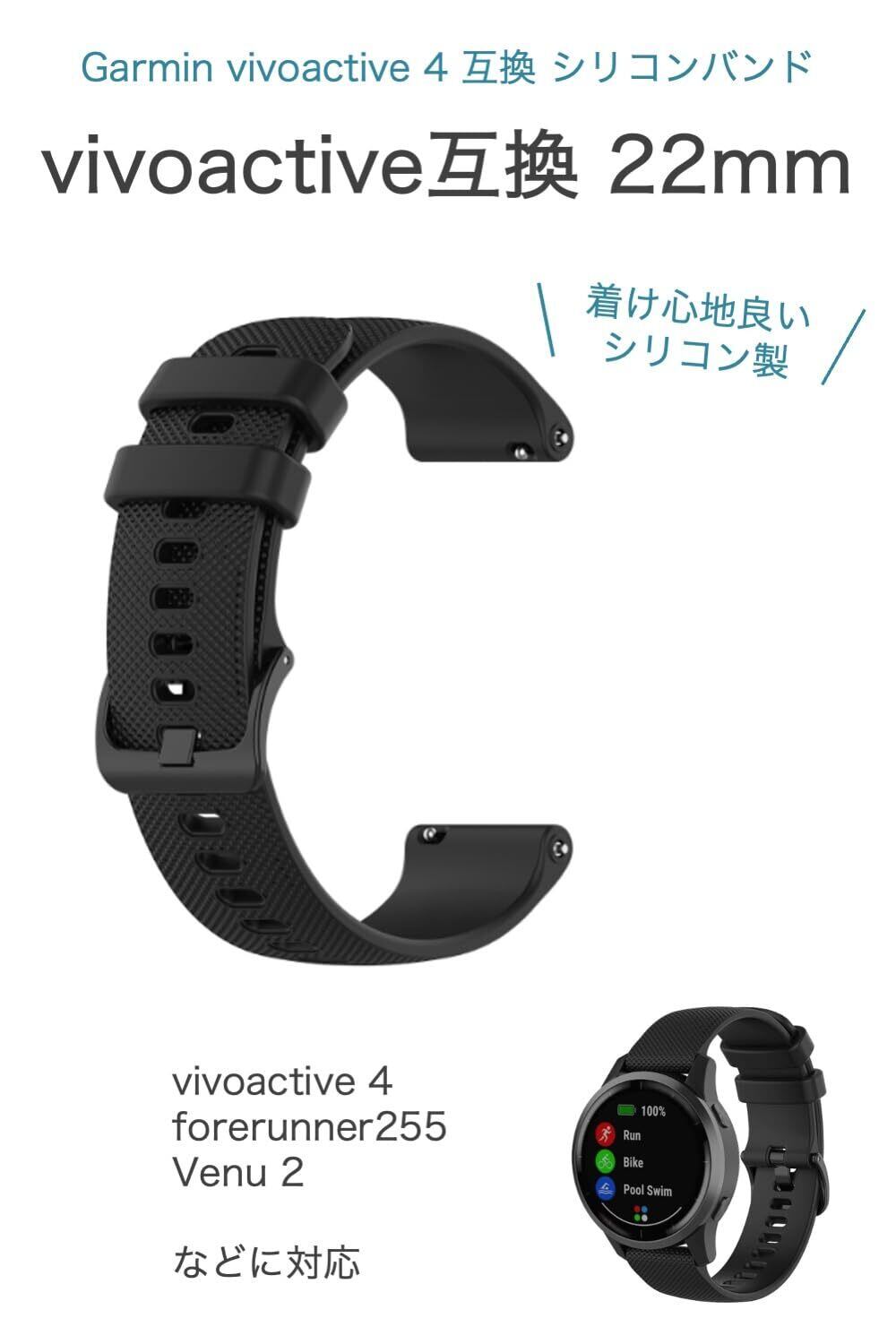 Garmin vivoactive 4 交換バンド vivoactive 4 / forerunner255 / Venu 2 幅22mm、フリーサイズ バンド交換や予備に