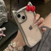 iphone 15 ケース 猫耳リボン 立体 クリア 韓国 かわいい いphoneケース 人気スマホケース キティちゃん おしゃれ ランキング 推し活ぴったり シンプル 透明 ソフトケース アイフォンケース TPU カバーケース