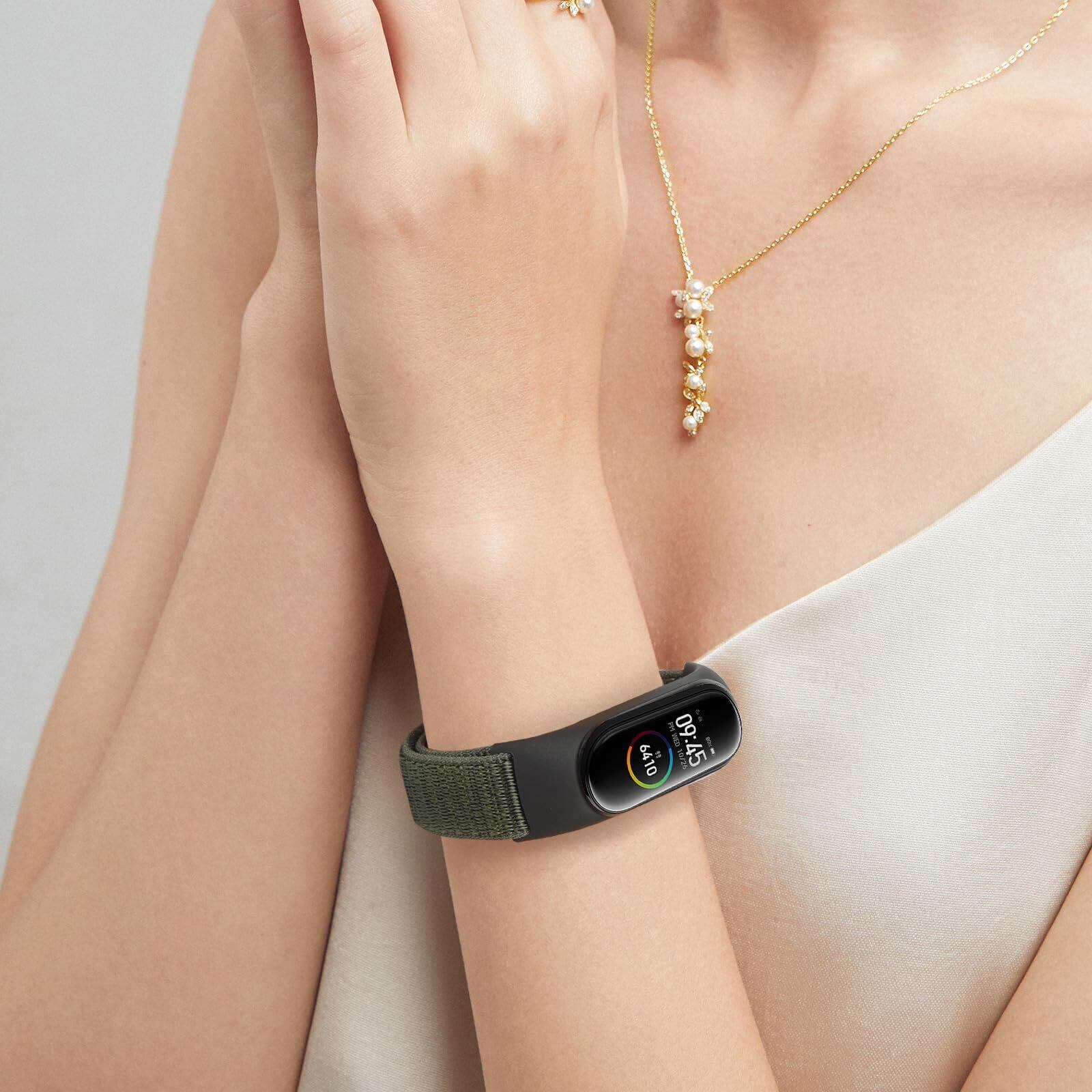 【5モデル対応】Xiaomi MiBand7/6/5/4/3の特別なデザイン。男性にも女性にも着用できる、贅沢で快適なナイロンストラップ[トラッカーは含まれていません]。 カジュアルおよびフォーマルな機会に適しています。