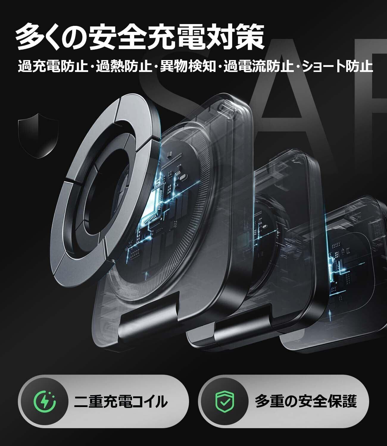 特徴 置くだけ充電, 短絡保護, ワイヤレス充電, マグネット
