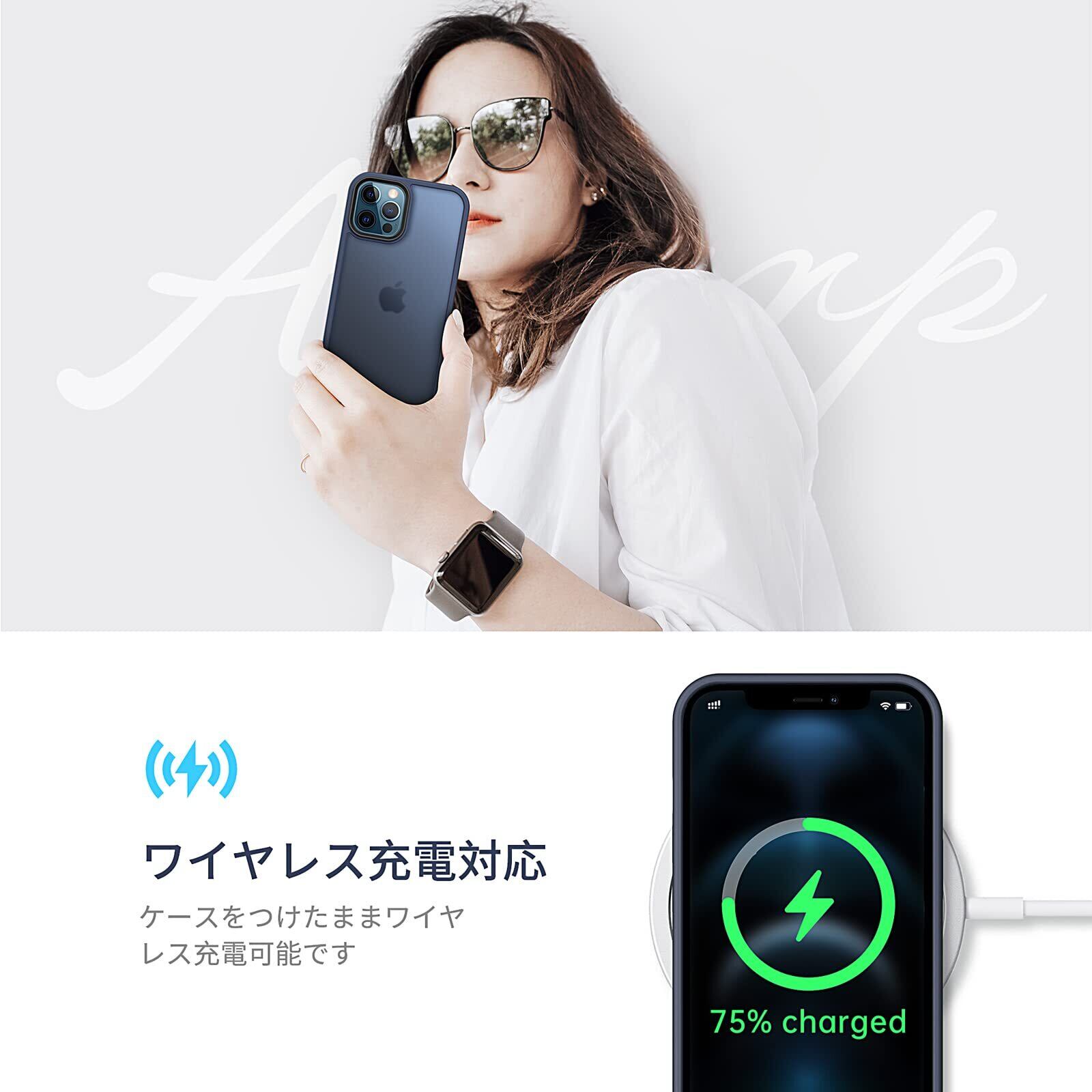 Anqrp iPhone12 Pro Max 用 ケース 半透明 耐衝撃 滑り止め 米軍MIL規格 指紋防止 マット感ケース ストラップホール付き ワイヤレス充電対応 スマホケース アイフォン12 Pro Max カバー 6.7インチ マットブルー