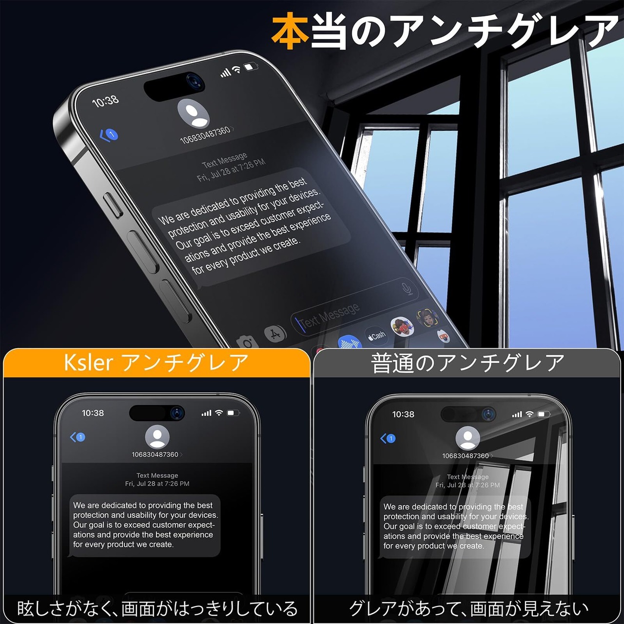 Ksleri アンチグレア iPhone 16/iPhone 15対応 ガラスフィルム 液晶 保護フィルム ガイド枠付き さらさら ゲームフィルム 指紋防止 反射防止 高硬度9H