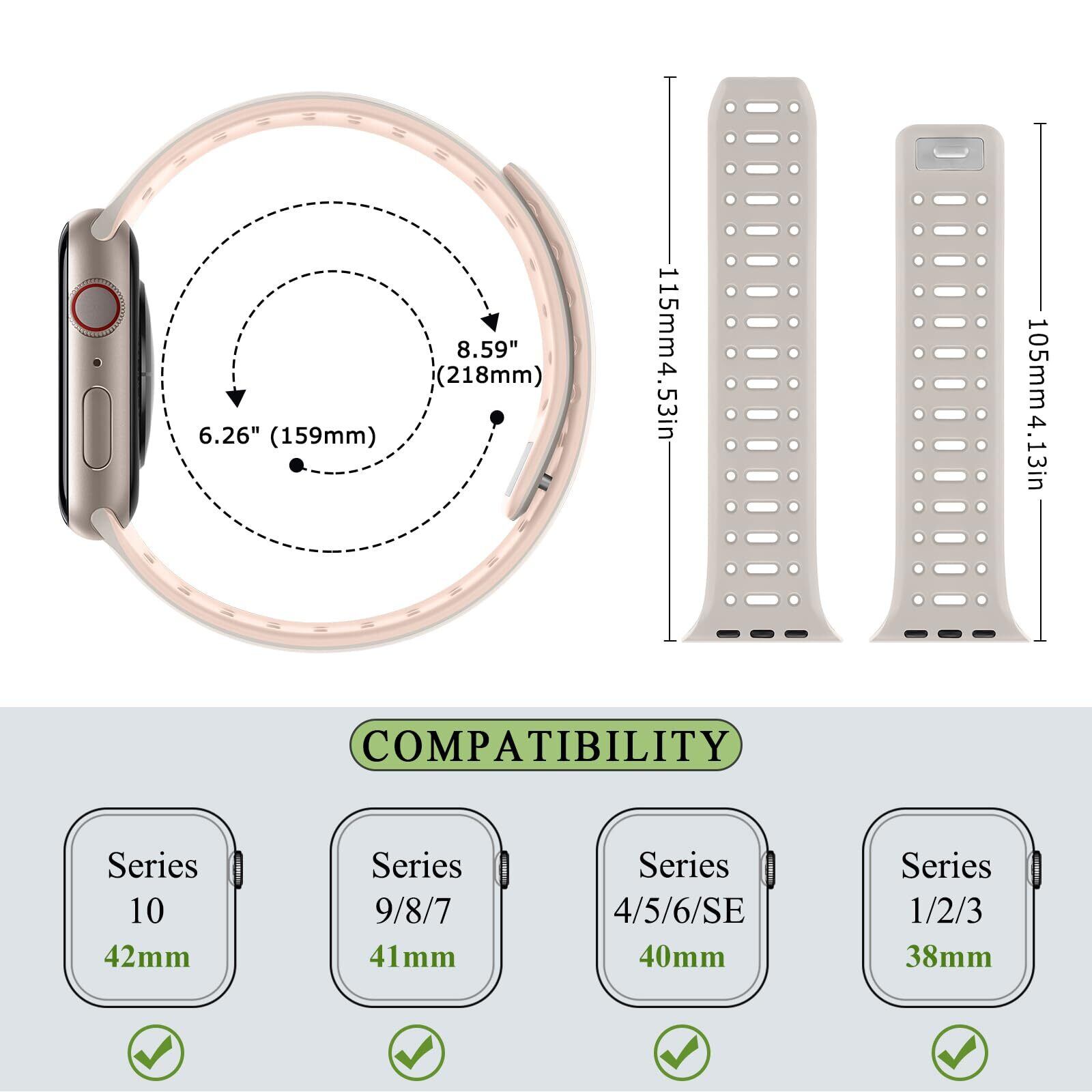ZZDZZ コンパチブル Apple Watch バンド 49mm 46mm 45mm 44mm 42mm 41mm 40mm 38mm、シリコン通気性 スポー 磁気 交換バンド Series Ultra2/Ultra/SE2/SE 10/9/8/6/5/4/3/2/1に対応 (42mm/41mm/40mm/38mm、 スターライト/ピンク)