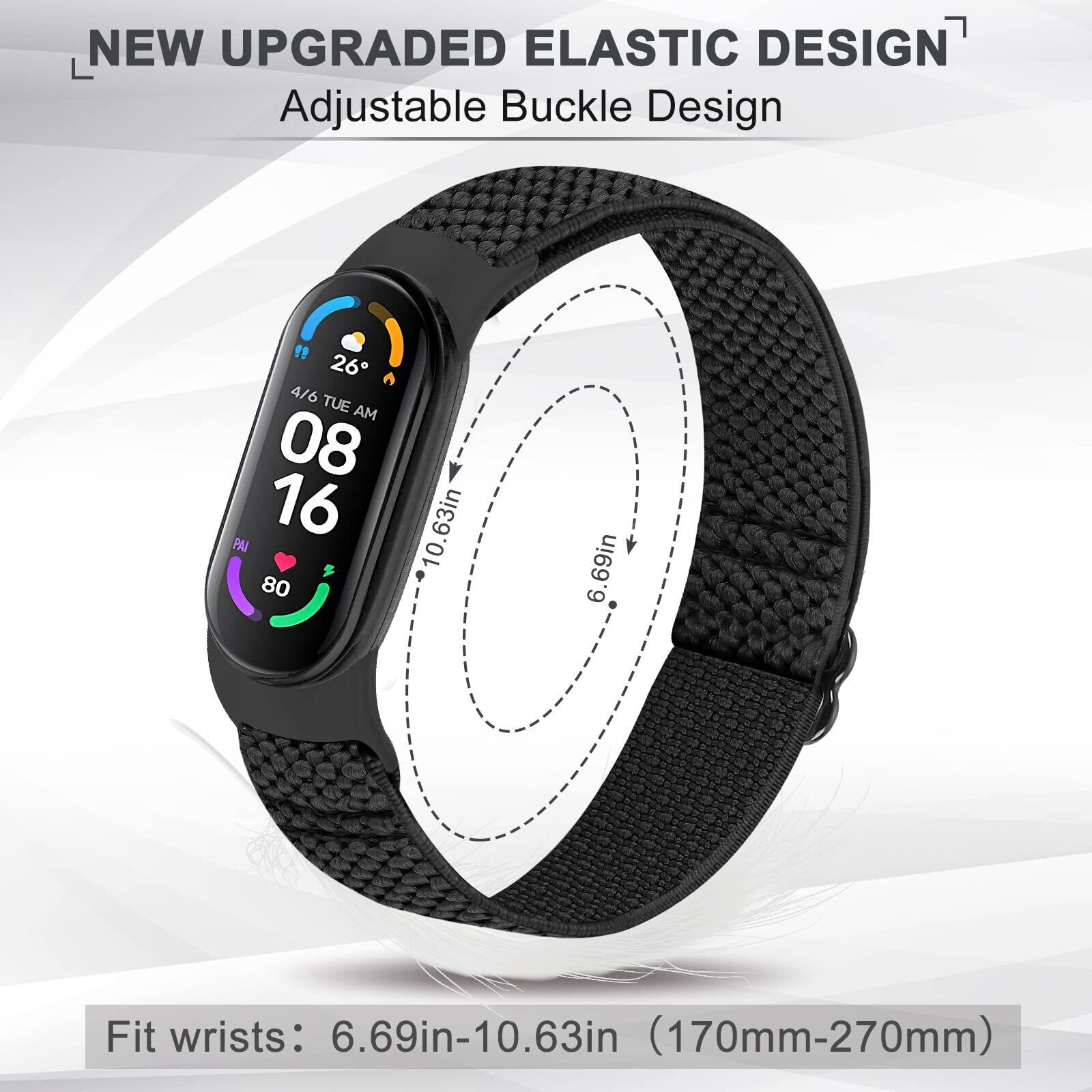 [Huamanlou] コンパチブル Xiaomi Mi Band 7/6/5 バンド 、弾性スポーツ 柔らかく快適で通気性の良い無段階で長さ調節ナイロンループ換えバンド3 Pack