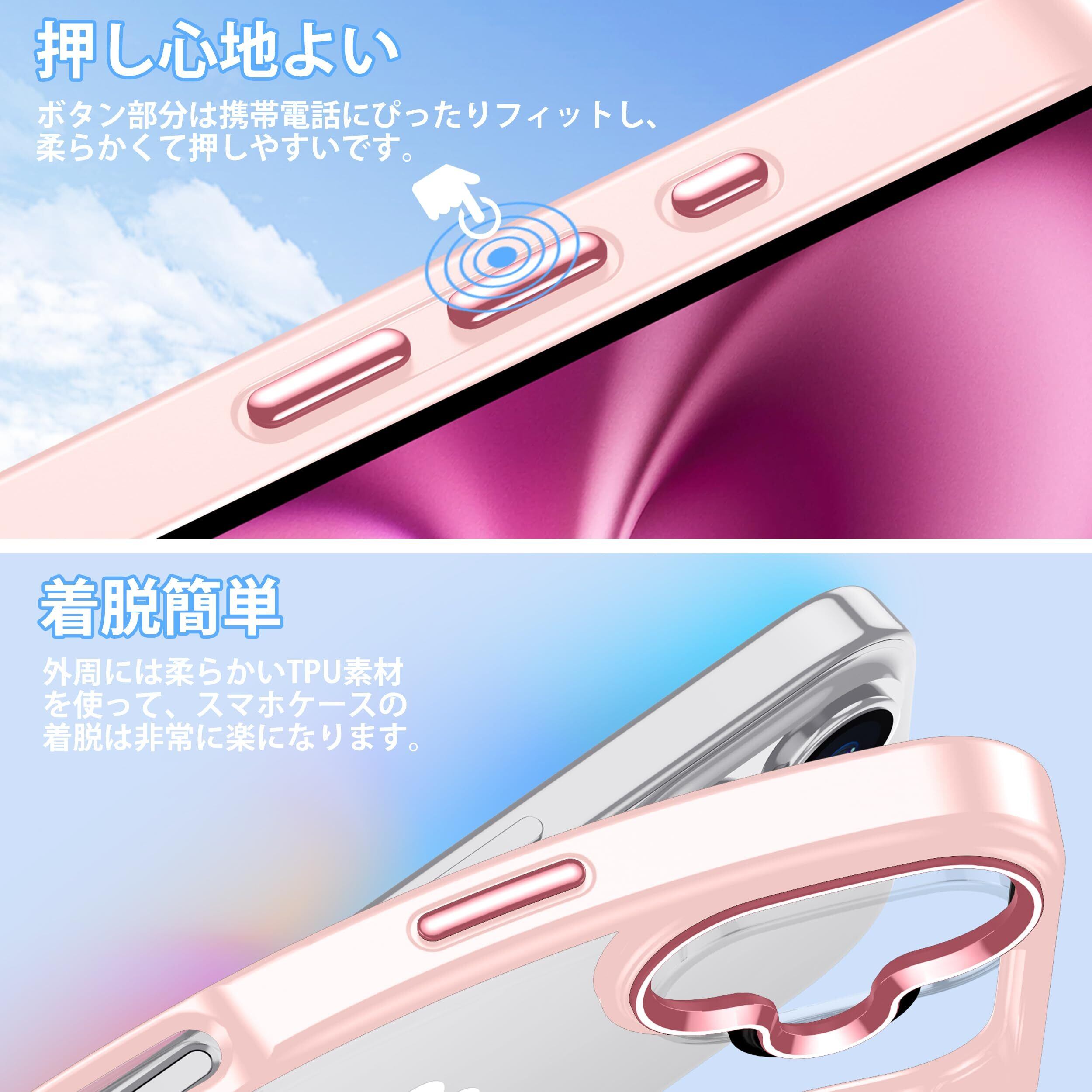 iPhone 16 ケース ピンク 耐衝撃 黄ばみ防止 アイフォン16ケース 米軍MIL規格 ワイヤレス充電対応 SGS認証 指紋防止 滑り止め 薄型 耐摩耗性 あいふぉん16 あいふぉん16 カバー スマホケース 6.1インチ 透明 JUSTCOOL