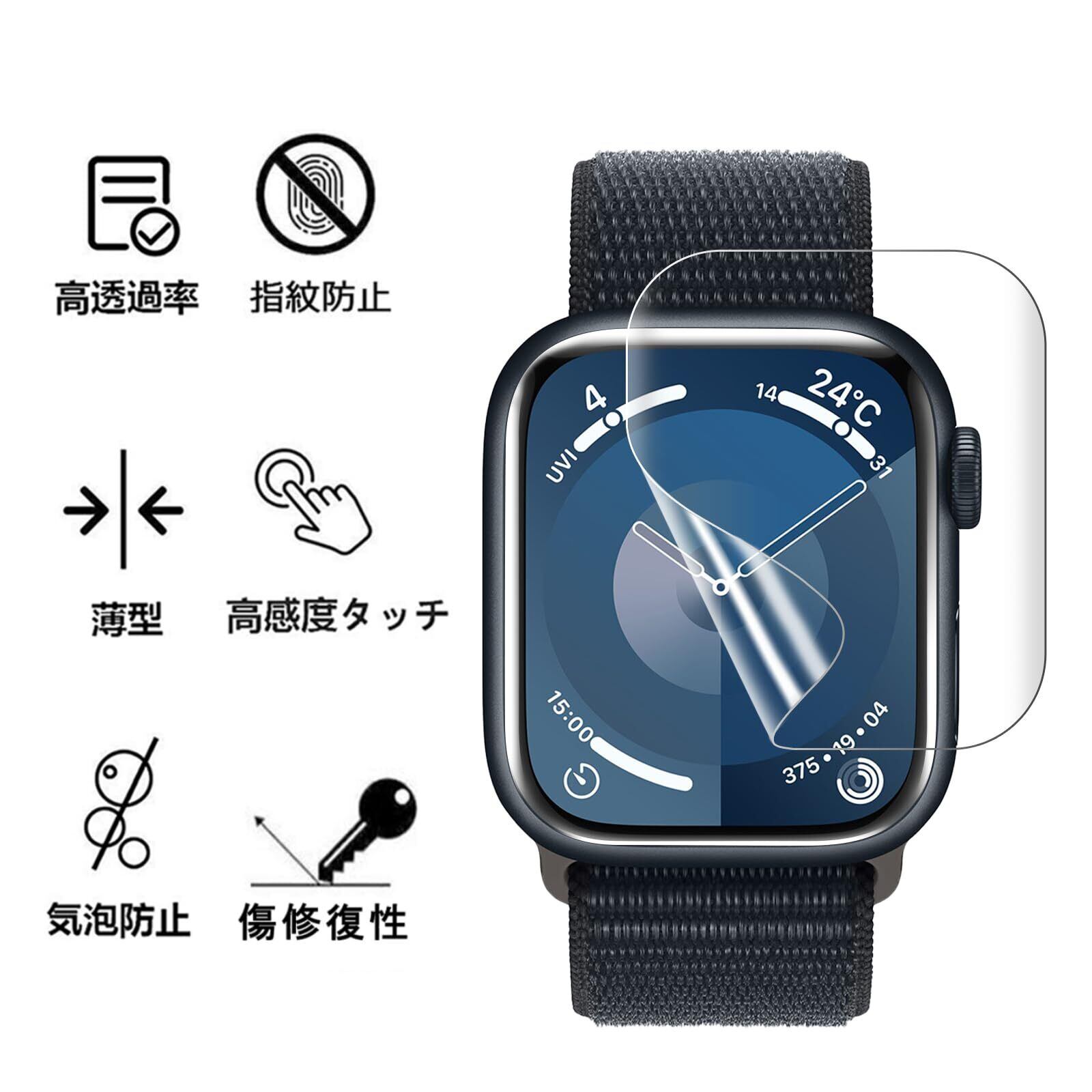 【高透過率】高品質のTPU素材を採用し、フィルムの装着感はゼロで、高い透明感Apple Watch画面の精細さを保ちます。透過率、画面の視認性とタッチ感も優れています。