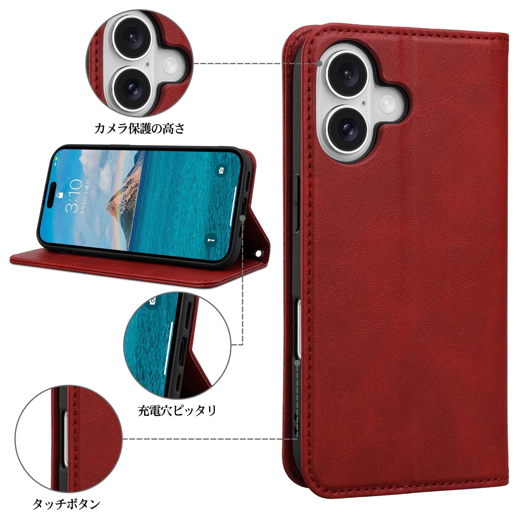 【在庫処分】Rssviss iPhone 16 用 ケース 手帳型 iPhone 16 専用 手帳型ケース マグネット式 iPhone16 専用 ケース 手帳型 カード収納 いphone 16 用 手帳型 ケース スタンド機能 iPhone 16 用 手帳ケース 軽量 iPhone 16 専用 ケース アイフォン 16 用 ケース 手帳型 アイホン16用 ケース 手帳型 6.1インチ W1 レッド | impsmile