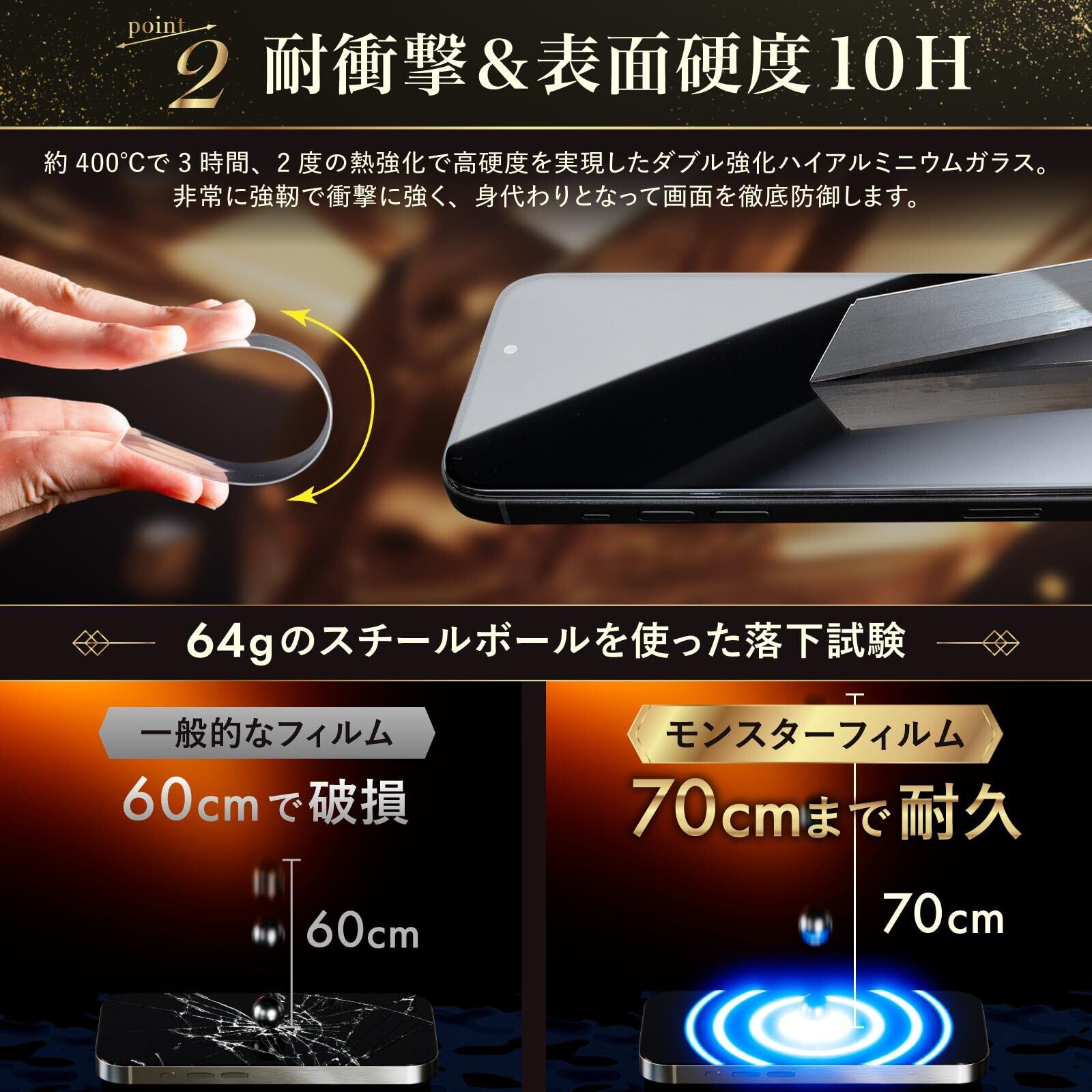 モンスターフィルム iPhone 14 Pro 用 クリア ガラスフィルム | 2枚セット ガイド枠付き | アイフォン 14 Pro 用 保護フィルム B0693