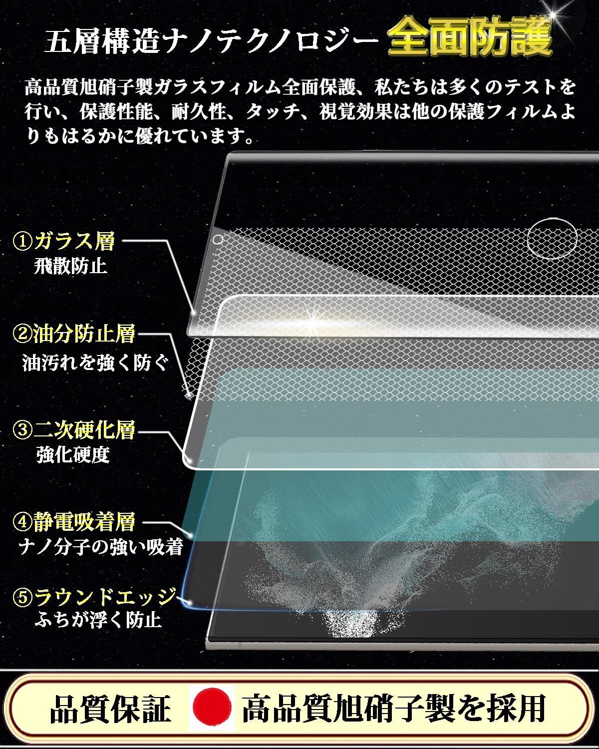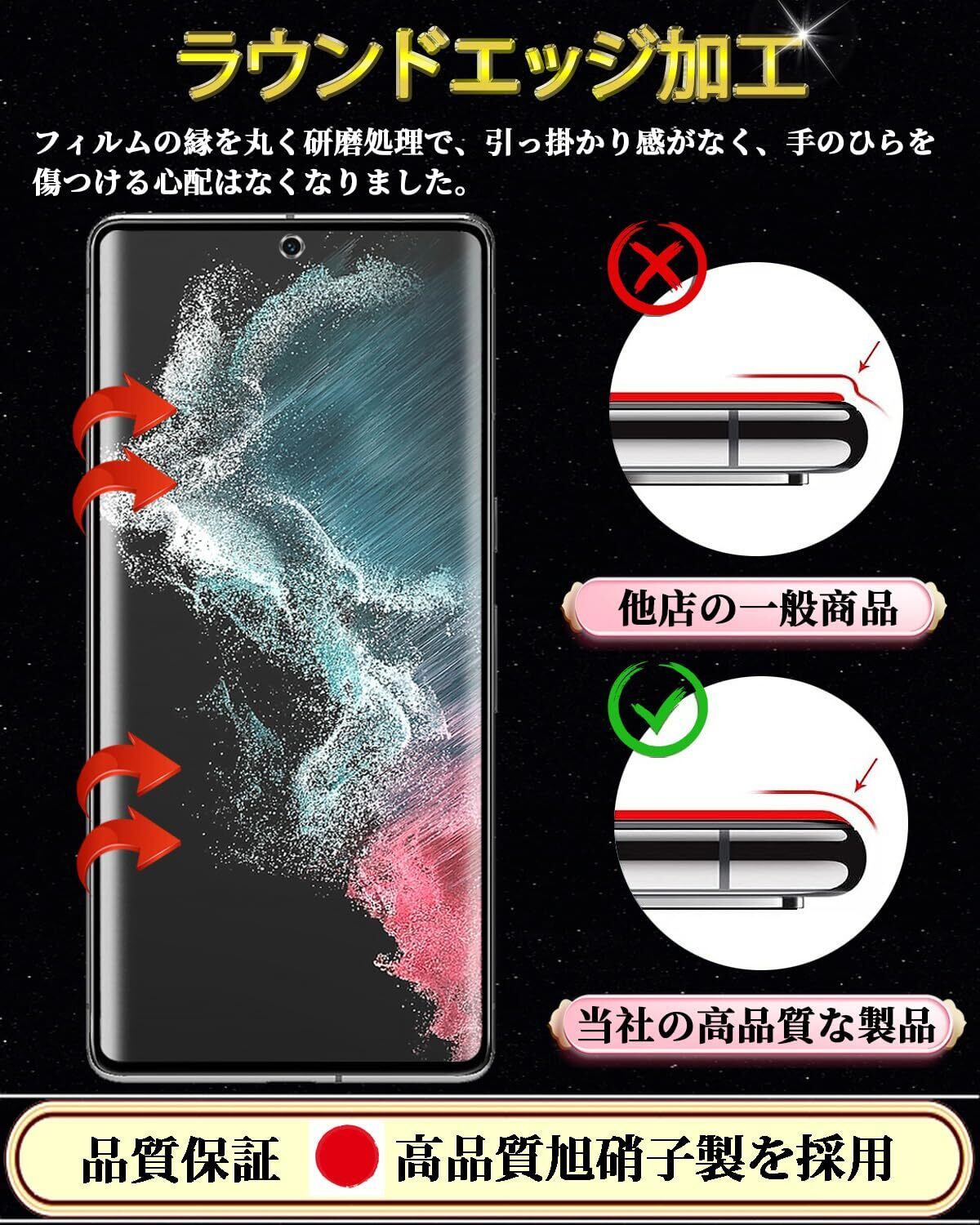 Galaxy S22 Ultra ガラスフィルム ギャラクシーS22ウルトラ ふぃるむ SCG14 SC-52C 保護フィルム 指紋対応可能 硬度9H 全面保護 飛散防止 気泡防止 指紋防止 撥水撥油 高透過 貼り付け簡単 キズ防止【1枚セット】
