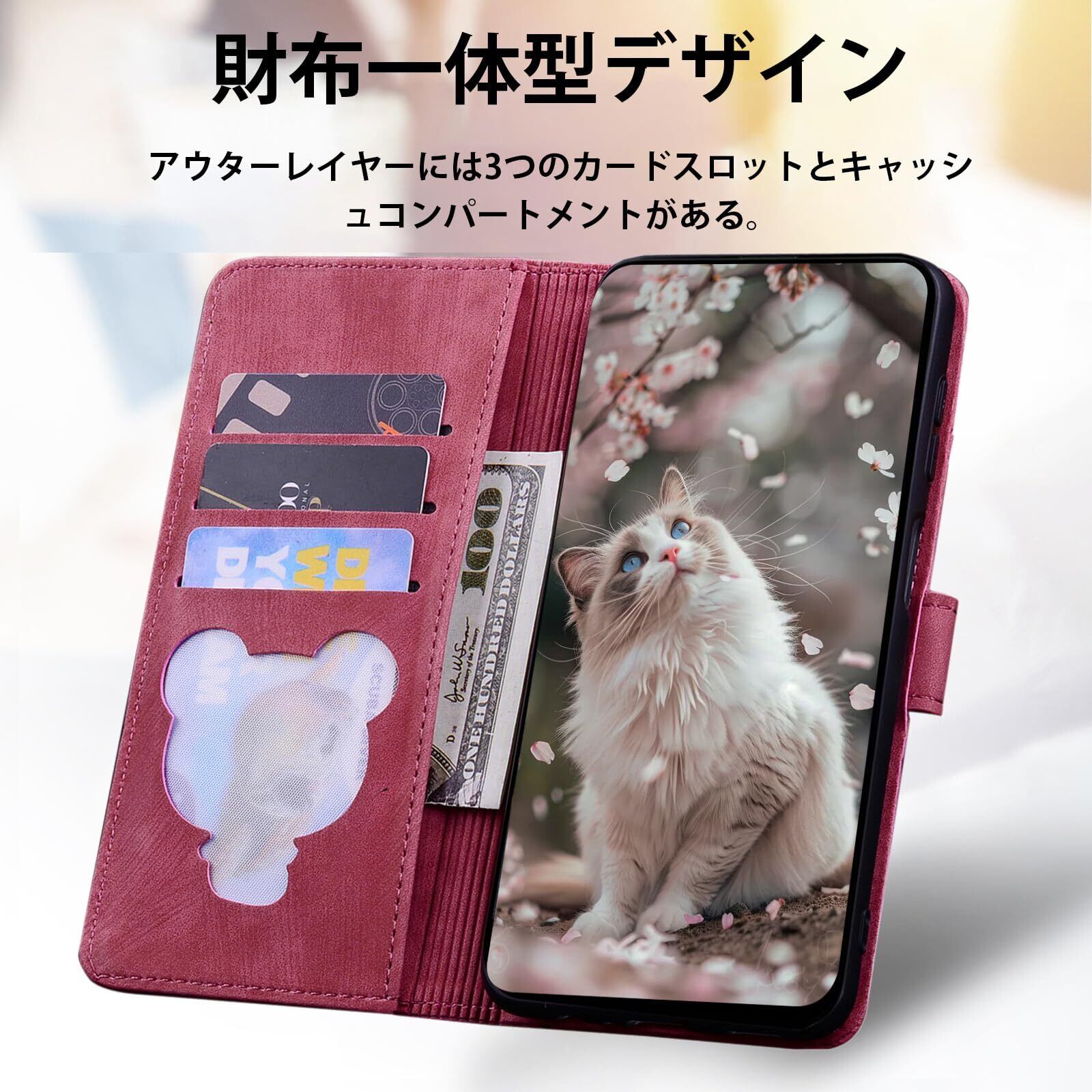 basio active SHG09 ケース 手帳型 Basio active2 SHG12 ケース 手帳型 basioアクティブ2 ケース a201sh ケース シンプルスマホ6 ケース ベイシオアクティブ shg09 ケース スマホケース 人気 PUレザー カード収納 かわいい猫 軽量 便利 手触りが良い 耐衝撃 角度調整可能なスタンド マグネット式[レッド]