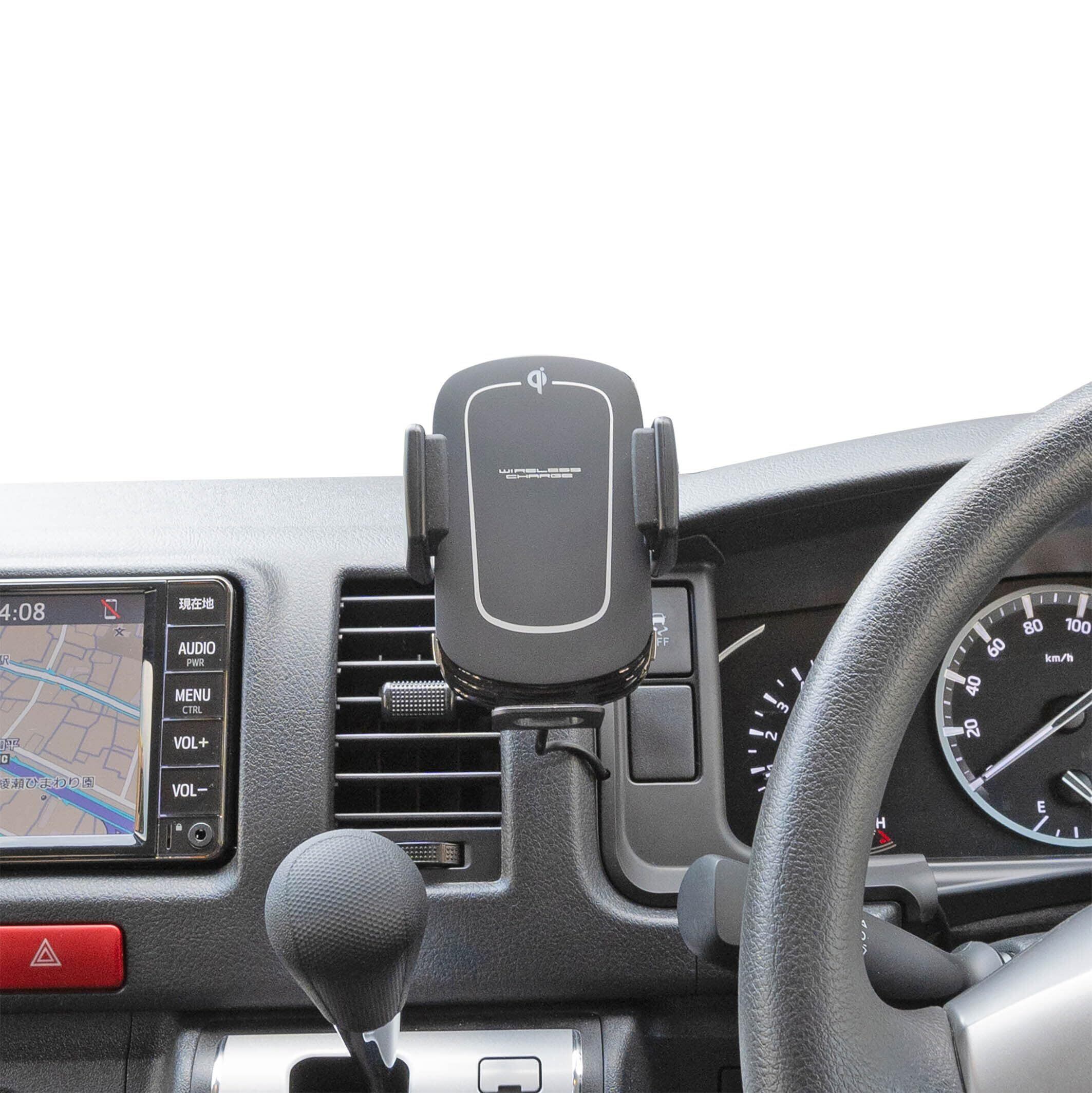 カシムラ 200系ハイエース バン/ワゴン/コミューター4型~6型に対応 専用設計のワイヤレス充電スマホホルダー2 自動で回転してスマホを横置き NSK-TY003