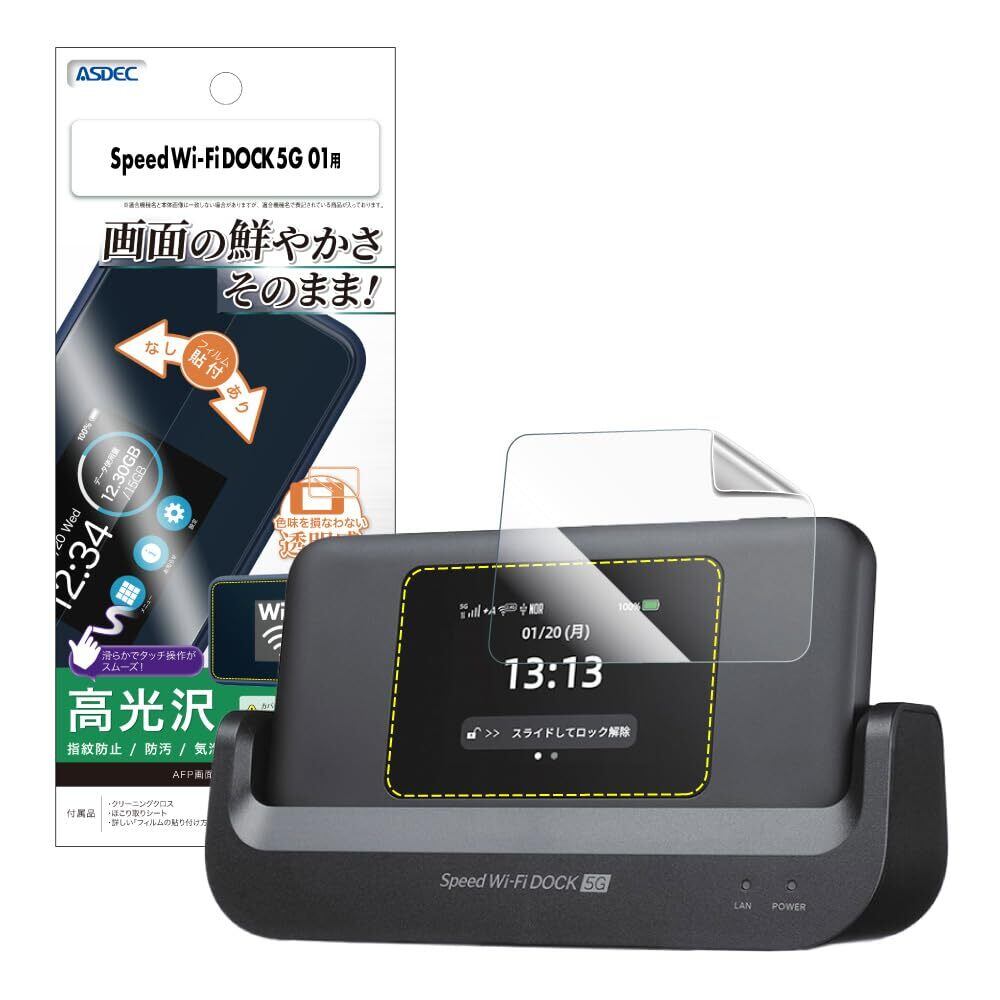 【アスデック】Speed Wi-Fi DOCK 5G 01用 光沢フィルム 日本製 クリア 指紋防止 防汚 気泡消失/ASH-CPS01