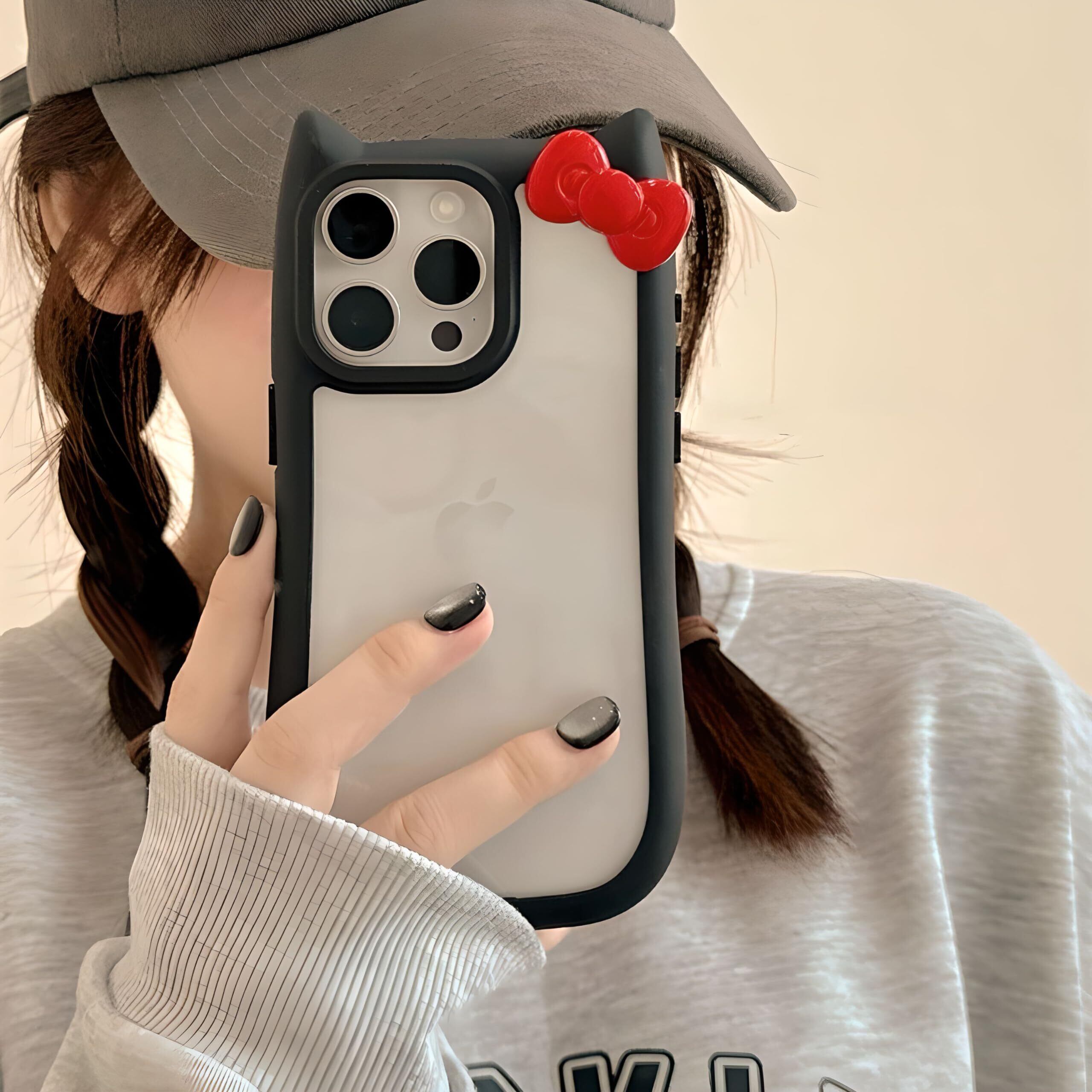 【在庫セール】iphone 15 ケース 猫耳リボン 立体 クリア 韓国 かわいい いphoneケース 人気スマホケース キティちゃん おしゃれ ランキング 推し活ぴったり シンプル 透明 ソフトケース アイフォンケース TPU カバーケース | impsmile