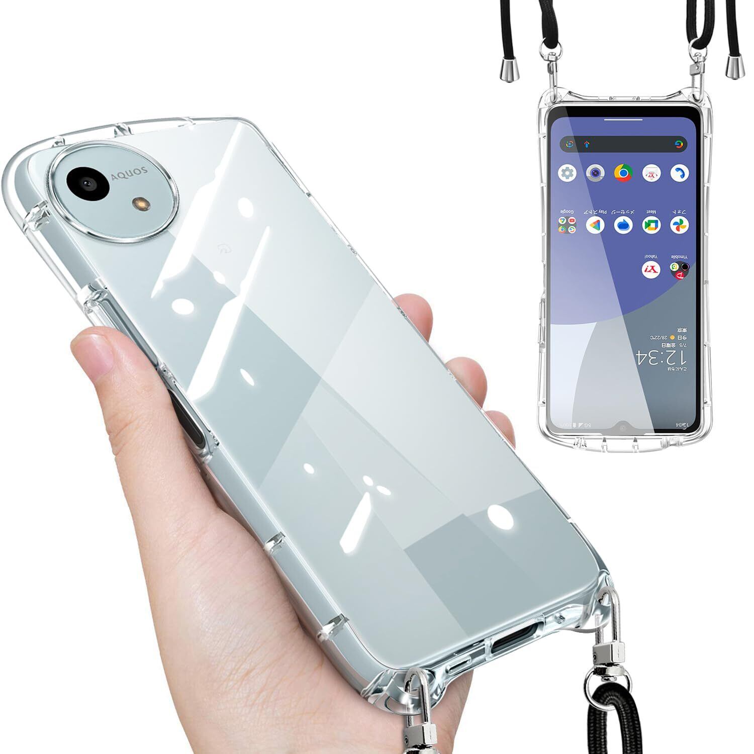 AQUOS wish4 SH-52E ケース ショルダー ストラップ付き wish4 sh-52e カバー クリア 肩掛け 斜めかけ TPU シリコン 耐衝撃 全面保護 薄型 韓国 可愛い 縄掛け 取り外し可能 長さ調整可能 aquos ウィッシュ4 スマホケース