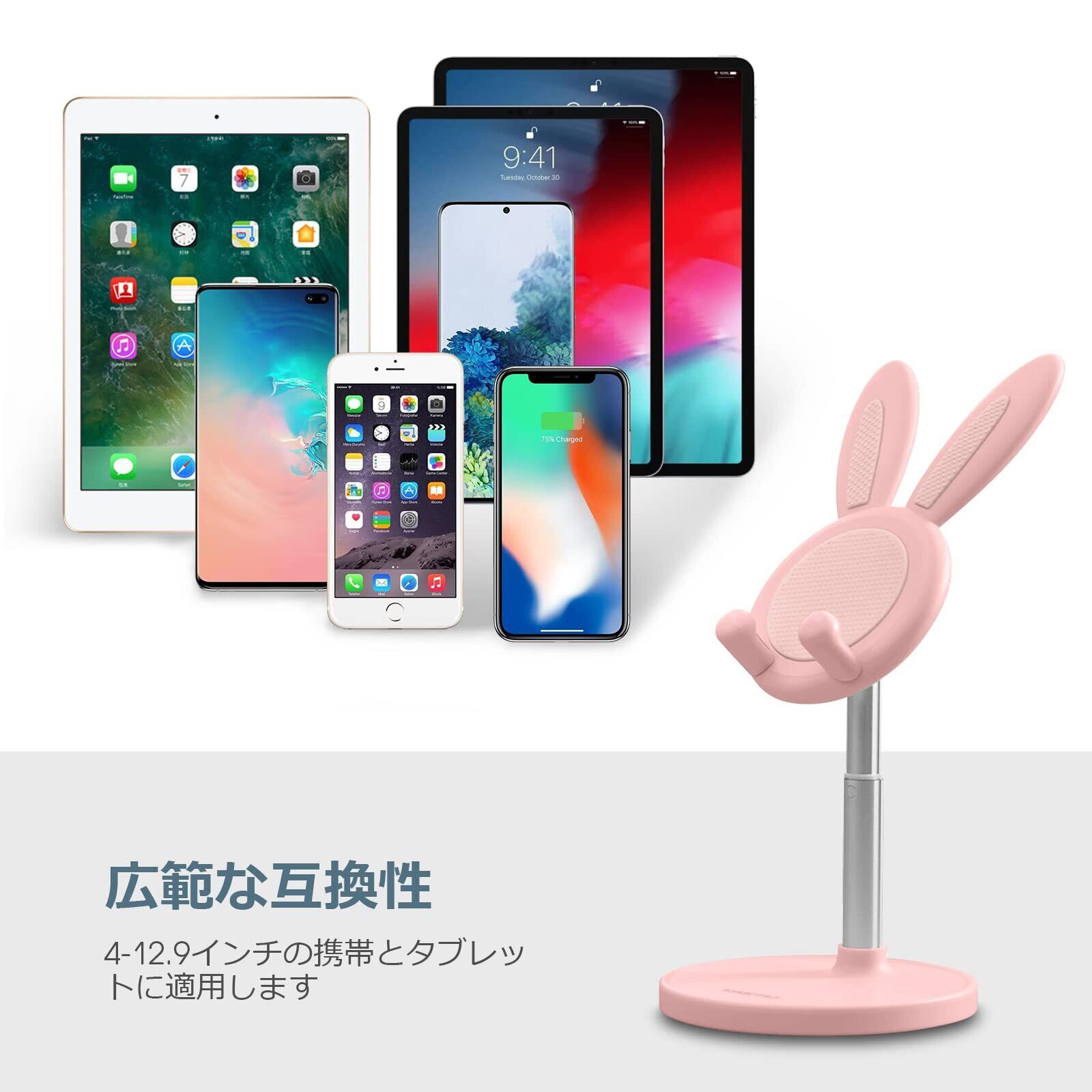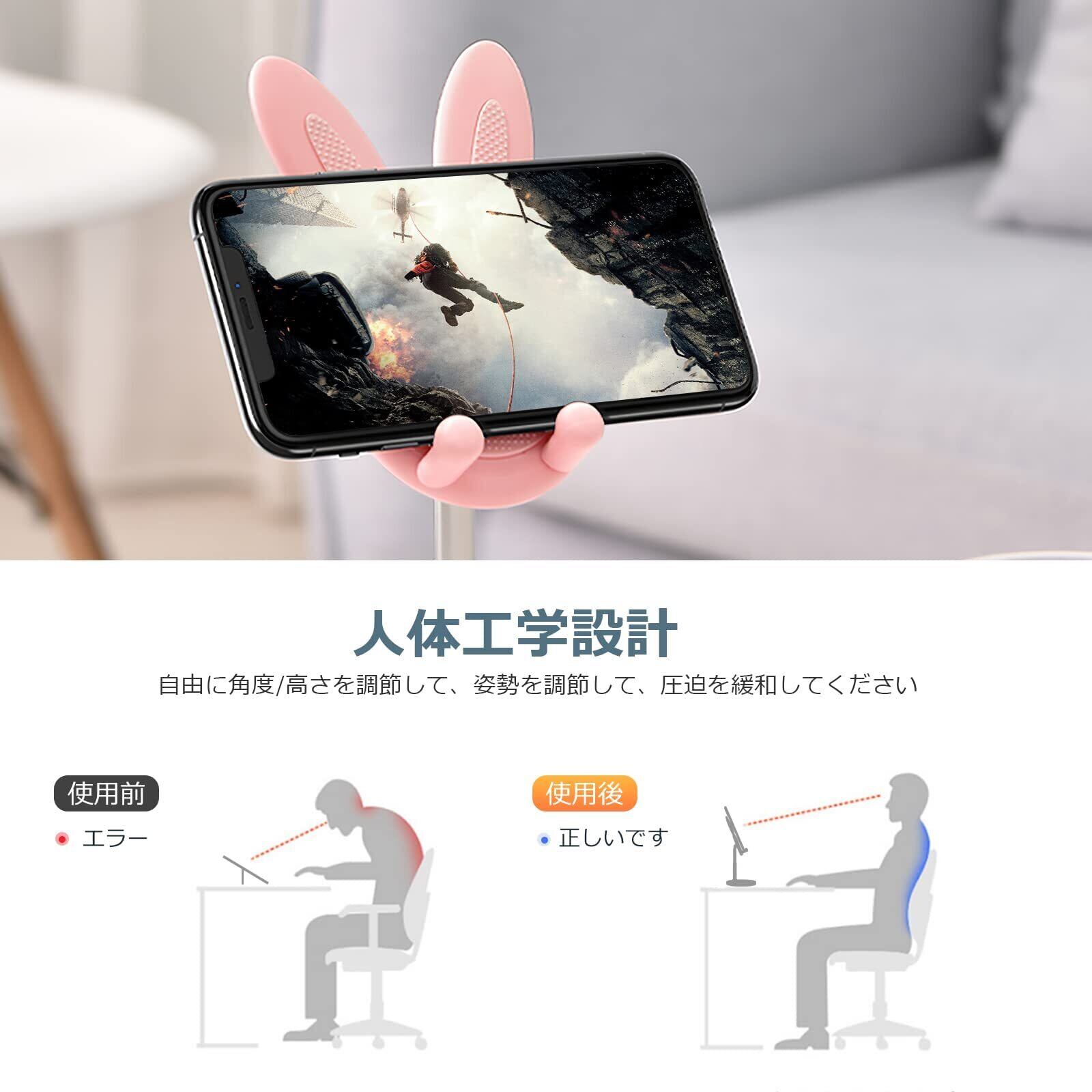 【幅広い互換性】この かわいいうさぎのスマホスタンドーは、幅広い互換性、多機種に対応:Nintendo Switch / Nintendo Switch lite / Kindle / iPhone13 / iPhone13 pro / iPhone12 pro max /三星/ Sony / Nexus / iPad / PCなどの4~10インチまでの携帯電話や錠剤を幅広く対応可能です。注:大型機器を使用する場合は、高さを低くし、適切な角度に調整して安定性を高めてください。