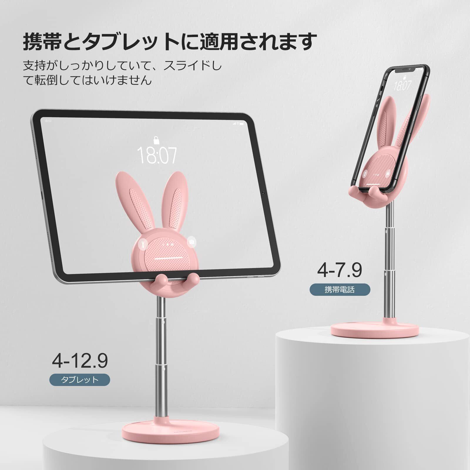 スマホスタンド かわいい ウサギ型 iPhone スタンド卓上 携帯電話ホルダー かわいい 角度と高さを調節可能 多機能 ヘッドセットスタンド 携帯電話/タブレット/ipad スタンド 多機種対応 在宅勤務 オンライ授業 女の子へのギフト (ピンク)