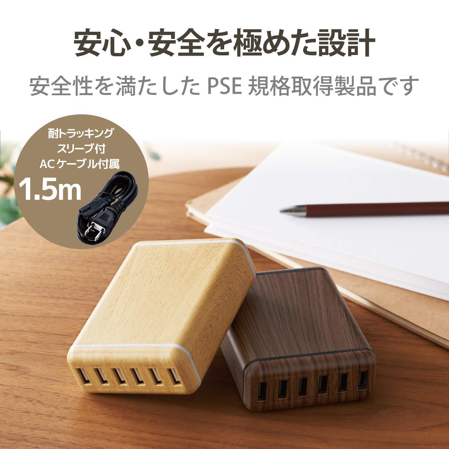エレコム USB コンセント 充電器 合計60W Aポート×6 【 iPhone15など/Android/タブレット 対応 】 木目 ウォールナット EC-ACD01W