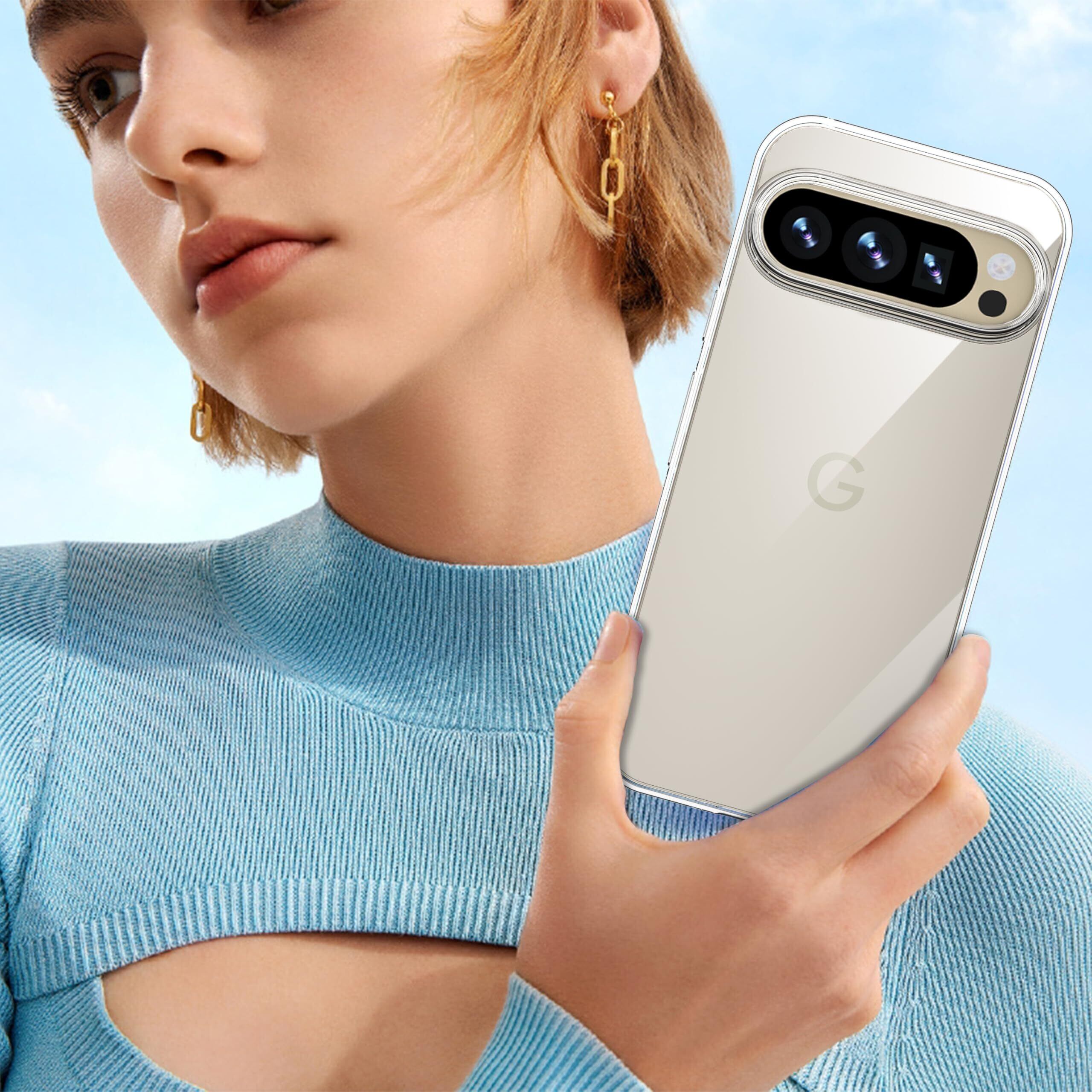 Google Pixel 9 Pro XL 用 ケース クリア 薄型 ドイツバイエル製TPU素材 超耐衝撃 全透明 黄変防止 レンズ保護 指紋防止 「ストラップホール付き」 ピクセル9Pro XL 用カバー クリスタル・クリア