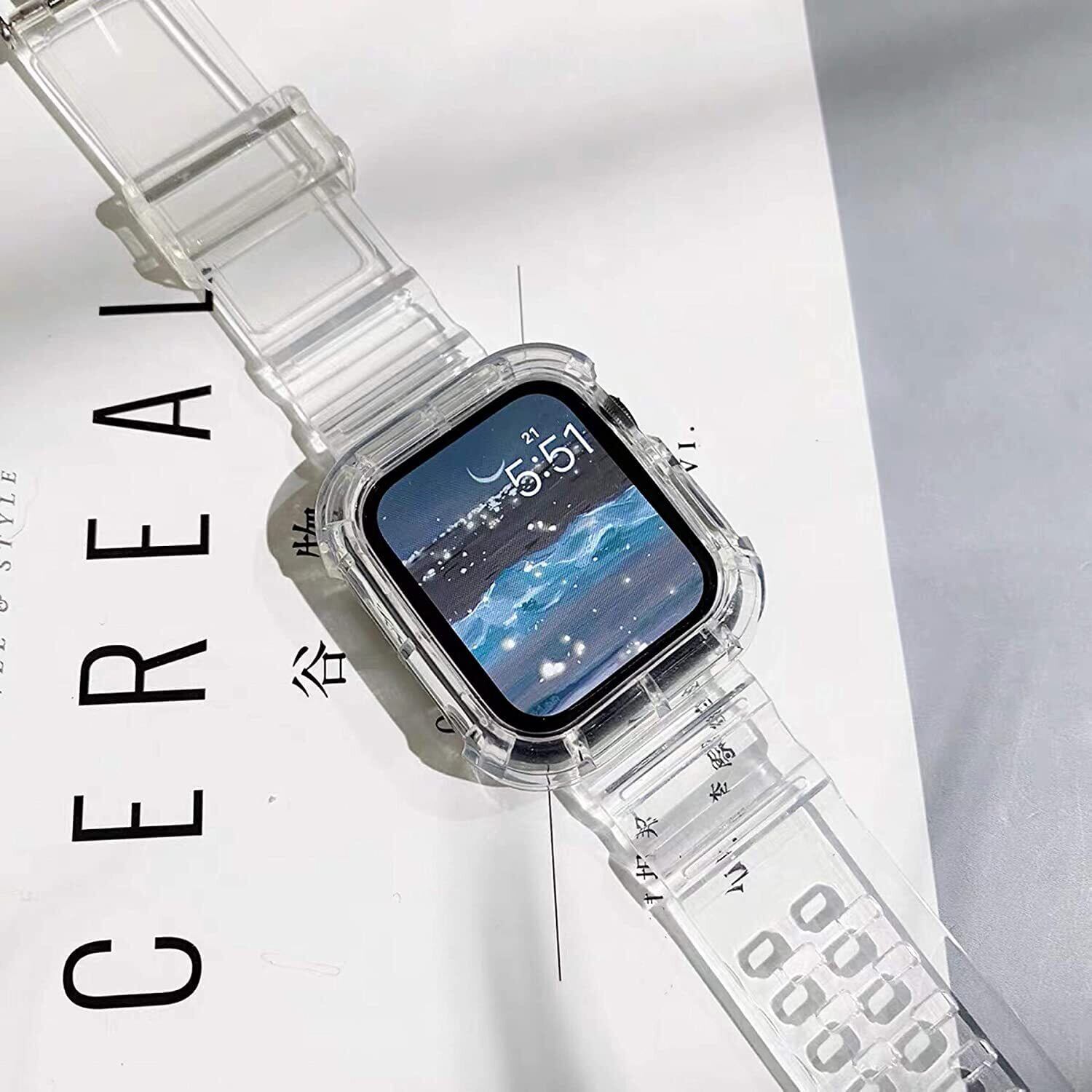 コンパチブル apple watch バンド アップルウォッチバンド スポーツバンド 一体型交換用ベルト 透明 クリア 耐衝撃ベルト iWatch Series 49mm 46mm 45mm 44mm 42mm 41mm 40mm 38mm 10/9/Ultra2/Ultra/8/7/6/5/4/3/2/1/SEに対応 TPU材質 全面保護ケース (42mm(Series 3)/44mm/45mm)