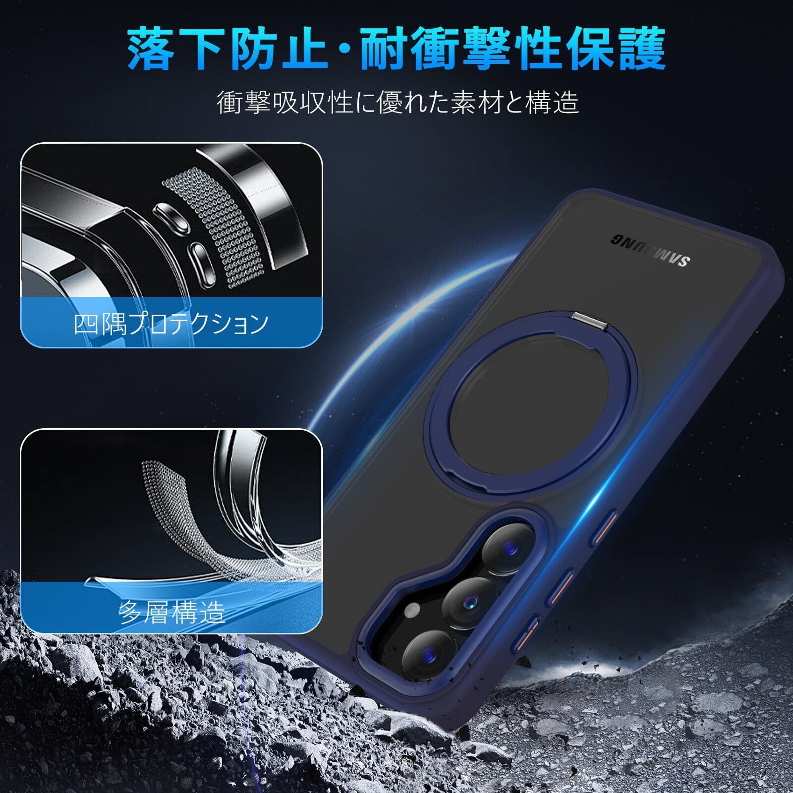 【特価商品】QUEASON【Galaxy S25 用 MagSafe対応 ケース】360°回転スタンド ワイヤレス充電対応 galaxy s25 ケース リング付き 米軍MIL規格 ギャラクシーs25 ケース magsafe 超強磁力 落下防止 galaxys25ケース 耐衝撃 ぎやらくしーs25ケース 半透明 防指紋(ブルー) | impsmile