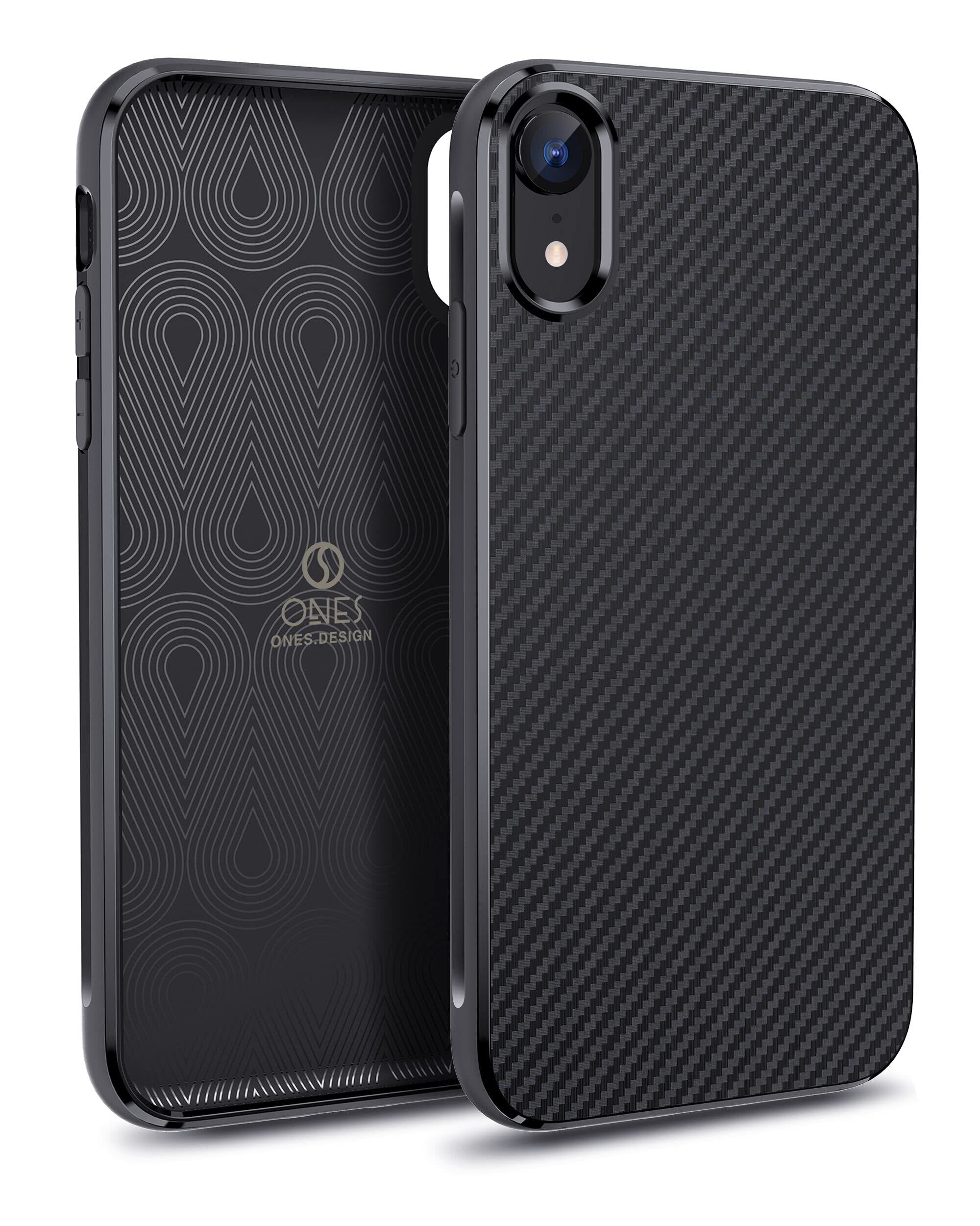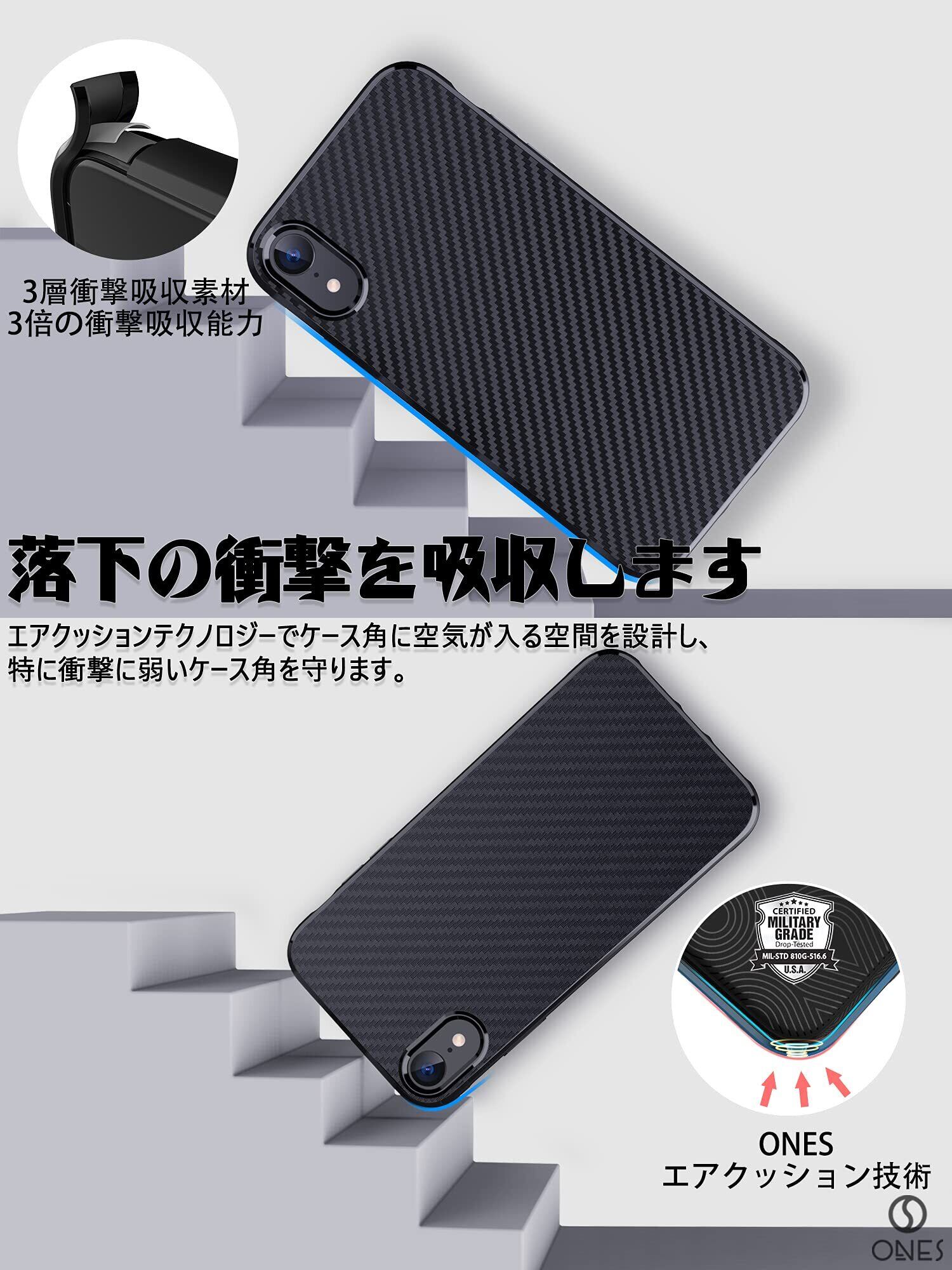 ONES 超薄型 iPhone XR ケース 米軍MIL規格 超耐衝撃 炭素繊維テクスチャ 『 滑り止めストレートエッジ、 画面 · レンズ保護 』〔 指紋防止、マット感、持ちやすい 〕 衝撃吸収 黄変防止 Qi充電 軽量 カバー