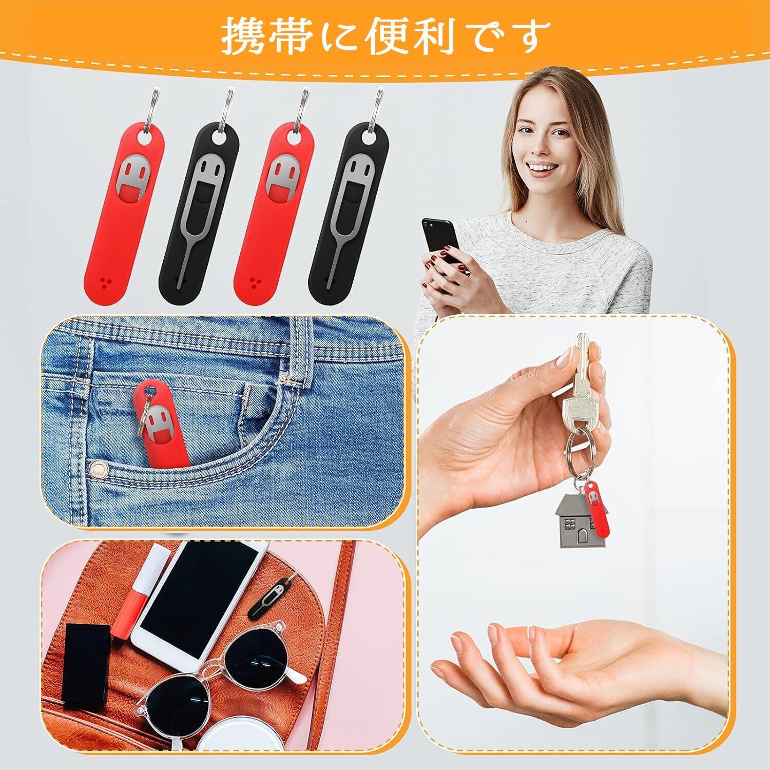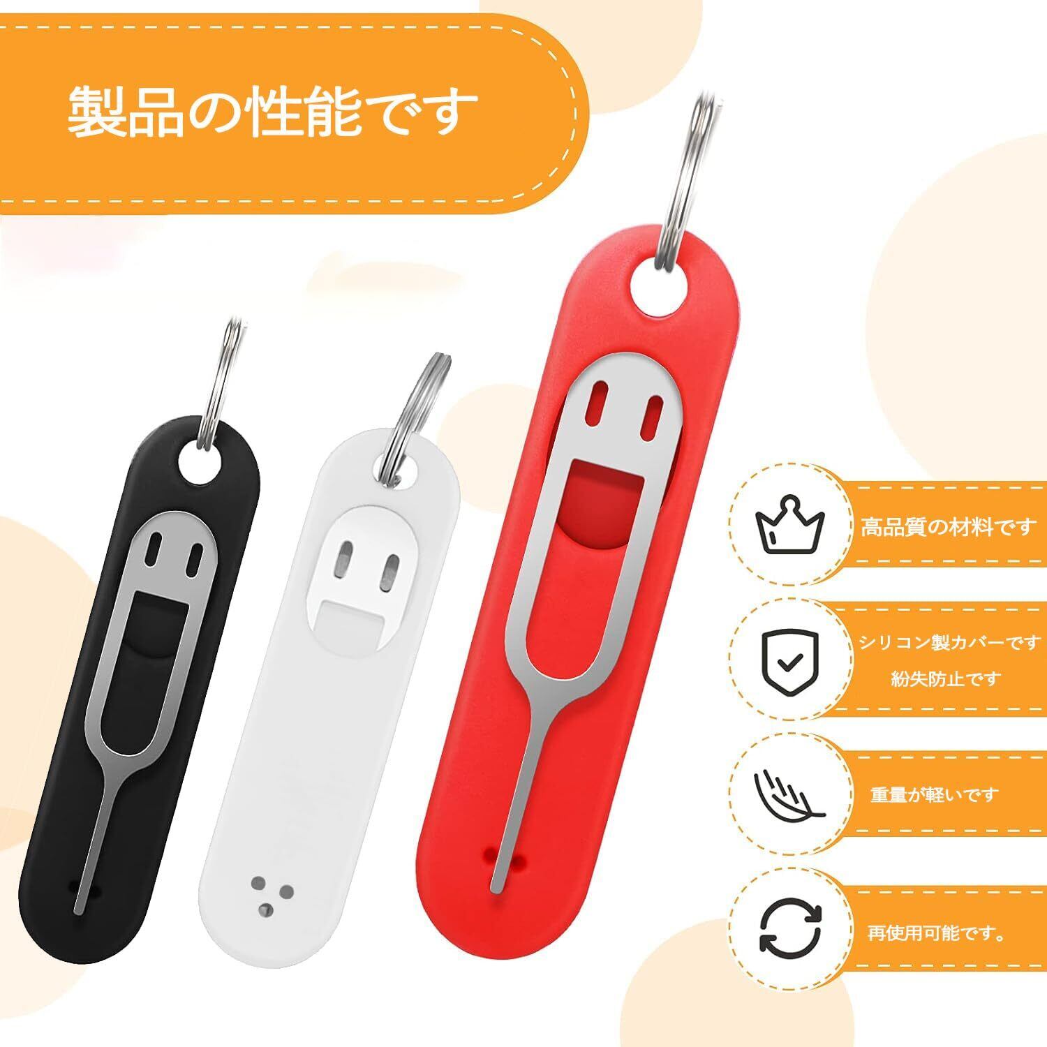 持ちやすい:SIMカードピンの紛失や破損をしないように、シリコンキーホルダーを付きます。キーチェーンのOリングを使用してキーリングに取り付けることができます。必要な時に用意しております。