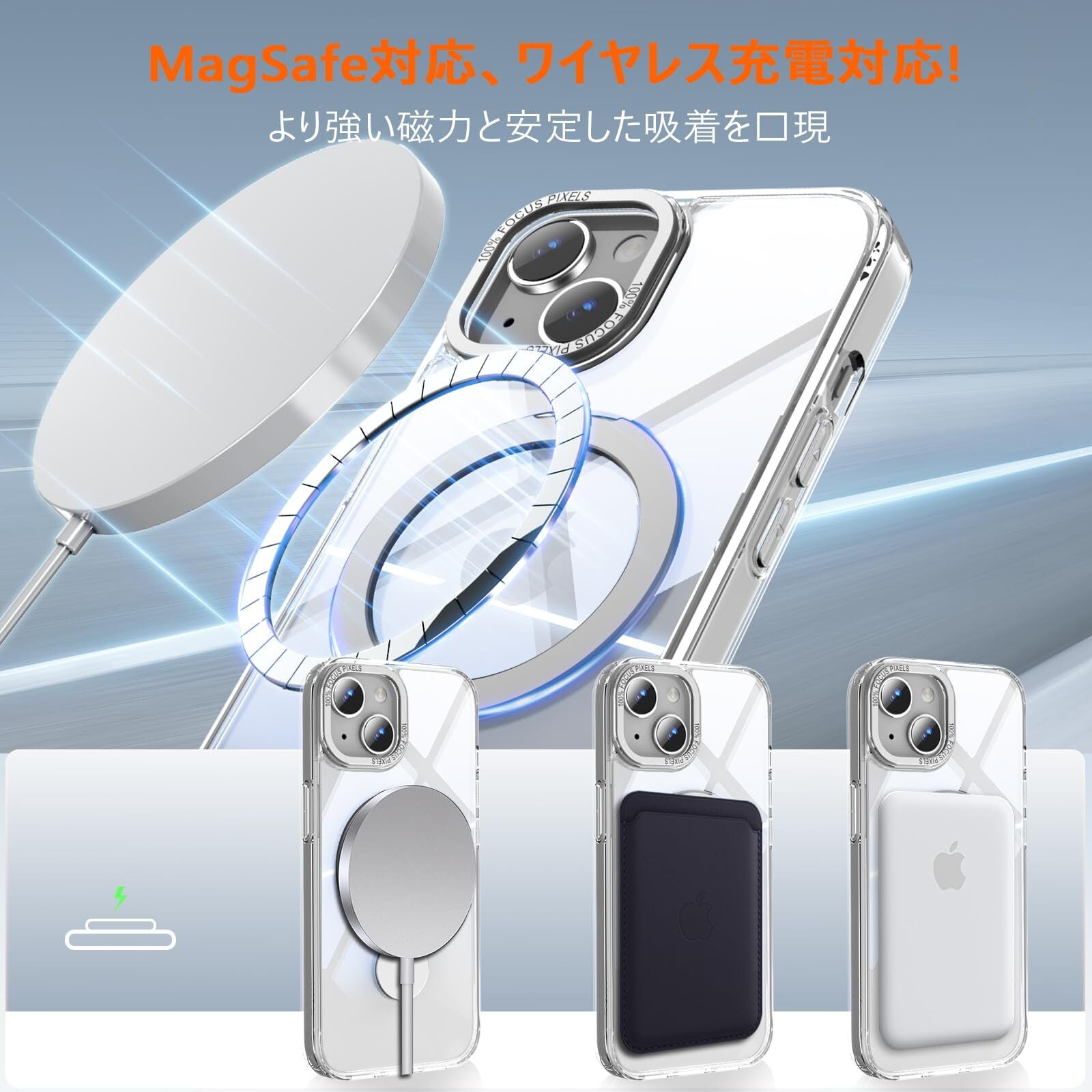【MagSafe対応・強力な磁力吸着】いphone15plus用 マグセーフ ケースには、N52の高強度MagSafeテクノロジーが採用されており、MagSafe金具がしっかりと固定されて安定性を確保し、簡単に外れることはありません。携帯電話ケースには磁力がアップグレードされた強力なマグネットが搭載されています。ワイヤレス充電、モバイル電源、カーマウント、その他すべてのMagSafeアクセサリにも適しています。安定性を持ち、充電器を近づけると高速ワイヤレス充電が実現です。強力な吸着力で、ワイヤレス充電のためにスマートフォンケースを取り外す必要はありません。