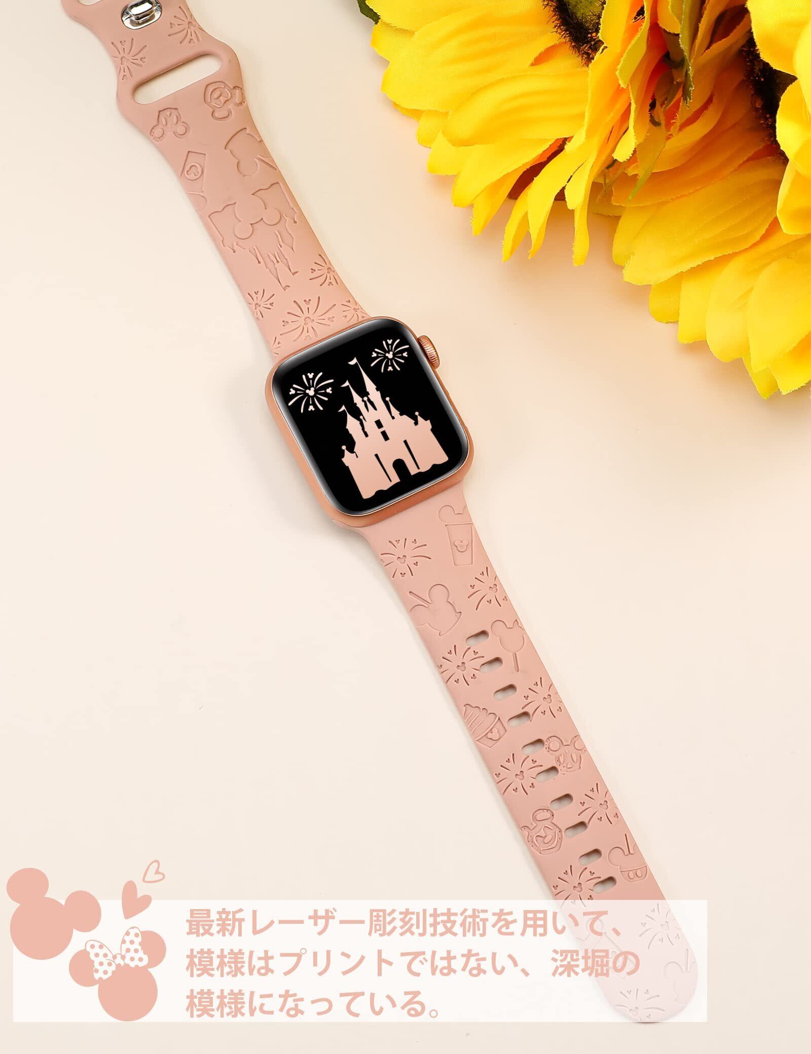 [Girovo] Apple Watch バンド/アップルウォッチ 41mm 40mm 38mm, キャラクター Apple Watch 9 シリコン交換ベルト 萌え 女性 レディース for iWatch Series 9/8/7/6/5/4/3/2/1/SE/Ultra/Ultra 2(ピンク)